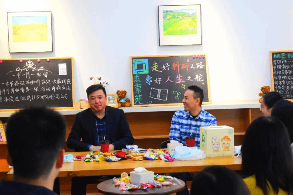 10月29日,在问学咖啡厅内,2138cn太阳集团城“求索苑”第二期活动正式开始。本次活动以“走好科研之路,掌好人生之舵”为主题,由付一诺同学主持。边银丙和龚钰华老师受邀而来,与20多名研究生们共同畅谈着科研生活中的日常与苦恼。
