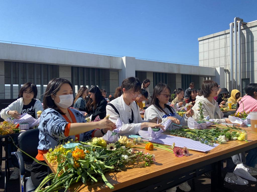功能丰富的油菜不仅美味,而且养眼。3月中旬,植科院举办七彩油菜花插花活动,50余名师生共聚在三综七楼天台,赏花插花,共探油菜花多彩奥秘。叶沈华博士从观赏用途、改良机理等方面,向师生介绍团队科研成果,七彩油菜花不仅可以食用,还可以通过杂交获得高产多彩油菜花,获得更大经济效益。文静副教授认为,七彩油菜花作为花材极具观赏性,既可作为主花也可当做点缀使用,富有特色。“第一次用七彩油菜花插花,通过用七彩油菜插花来表达对自己、对生活、对植科的爱意,是属于植科人的浪漫。”文静说。