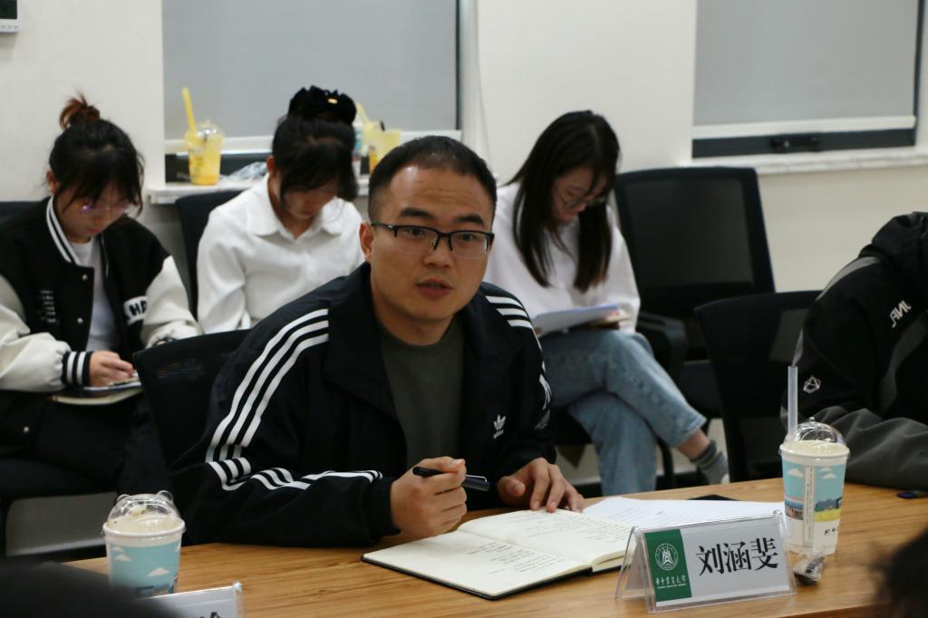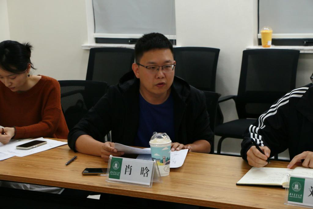 汇报结束后,刘涵斐、肖晗两位老师对大家的表现进行了集中点评。刘涵斐老师对大家的表现表示肯定,他谈到“每位同学分享的内容都和学院日常的工作息息相关,九个一是一个思维碰撞和相互学习的好机会,大家要把握当下,培养在工作中争先示范的意识。”肖晗老师指出,在研究生工作中,要用研究型思维开展研究型工作,要牢记习近平总书记提出的不断加强脚力、眼力、脑力、笔力的工作要求,提升自身本领,扎实耕好工作中的责任田。