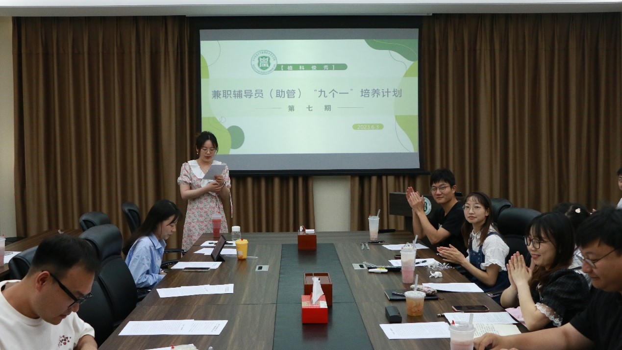 6月3日中午,植科院兼职辅导员(助管)“九个一”培养计划第七期于三综B308顺利举行。理学院研究生辅导员刘畅、动科动医学院研究生辅导员杨程龙、园艺林学学院兼职辅导员李小惠,植科院研究生辅导员任伟参加此次会议。
