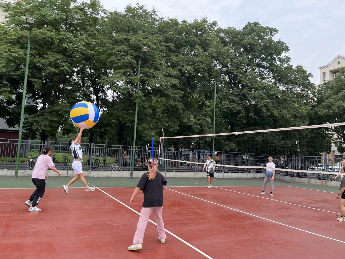6月14日-15日,随着一声哨响,比赛正式开始,本次比赛共6组,每一组均由老师和学生共同组队。双方队员迅速进入比赛状态,各组队员积极配合,积极组织好一传,开展进攻反击。赛场上,同学们挥洒汗水,彰显青春活力;老师们斗志昂扬,尽显飒爽风姿。最终,“作重队”“摸鱼队”“有序数队”“还是冠军对不队”成功从小组赛突围。