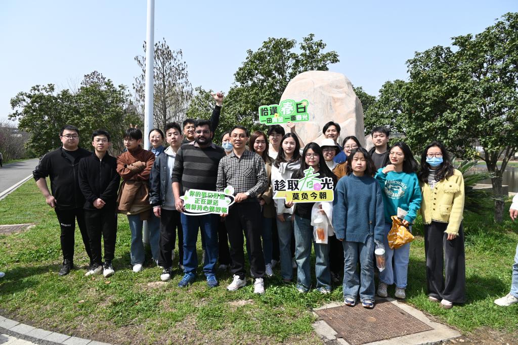 鄢文豪老师携家人以及整个实验室的学生参与了此次活动,他谈到:“学生干的事我们肯定得参与。这类型的活动不仅可以拉近老师与学生的距离,更能与家人、同事、学生们共享大好春光,欣赏校园美景。我们不仅仅是参与,更要在活动中全身心地感受大自然给我们带来的幸福感。”