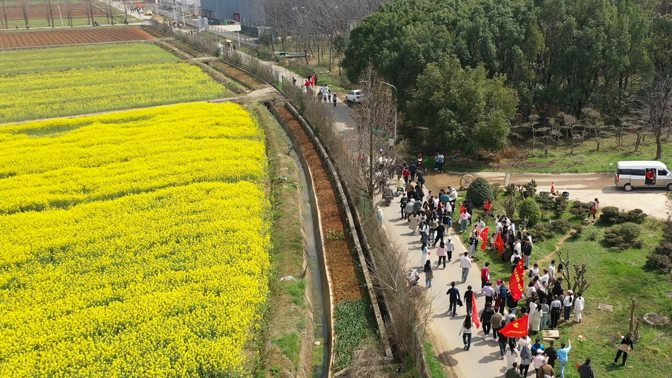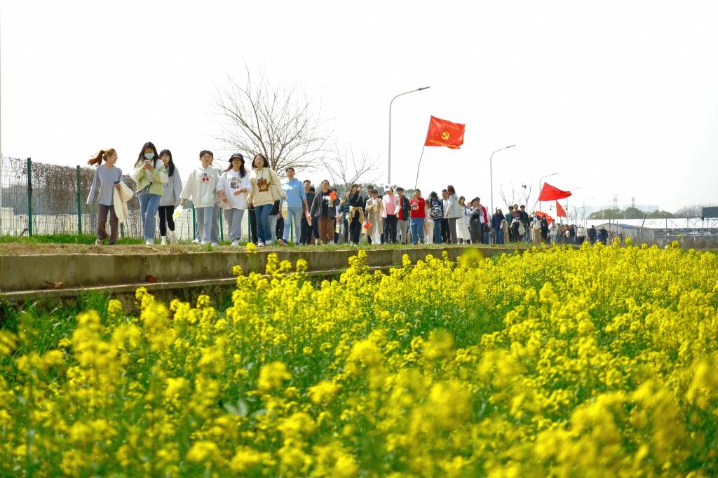 各支队伍满怀期待地从第三综合楼出发,途径油菜花田。队伍穿梭在油菜花田中,金黄的花海映入眼帘,令人陶醉其中。他们或驻足欣赏,或拍照留念,尽情享受着这难得的春日美景。随着队伍的行进,油菜花田的美景渐行渐远,但春天的气息却愈发浓郁。