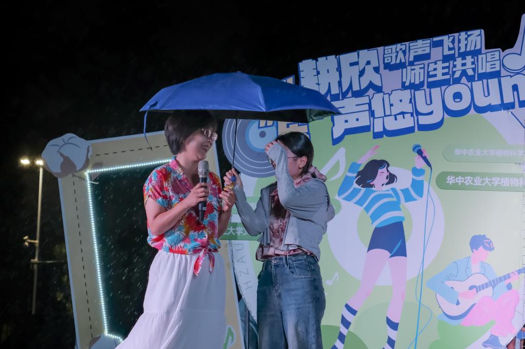 在翻涌的声浪和跃动的灯光中,选手们依次登台演唱,声悠扬、意绵长,一次次激起观众的欢呼。随着夜幕徐徐笼下,天空渐有风雨降至之势,尽管活动期间雨水击打着舞台,打湿了观众、工作人员和选手的肩头,但大家依旧在现场为各位表演选手和嘉宾欢呼鼓劲儿。