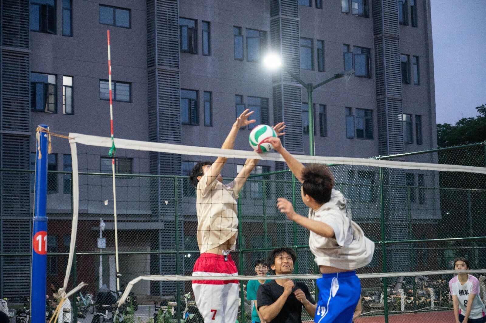 “果宝特攻队”发球,排球划出一道弧线。“节瓜好大条”队一传精准,二传迅速组织四号位进攻。郑瑞轩上步扣球,动作迅猛。对面,“果宝特攻队”欧阳家豪眼疾手快,跃起拦网,队友们迅速卡位、保护,严阵以待。双方配合默契,攻防转换瞬间完成,赛场气氛瞬间被点燃,精彩对决一触即发。