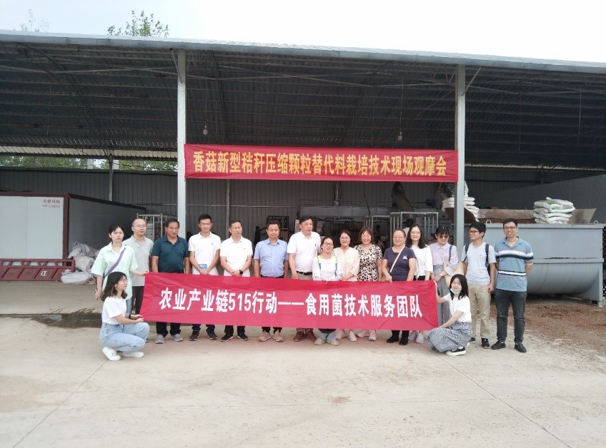 8月26日,湖北省“515”行动食用菌技术服务及我院科技成果“香菇新型秸秆压缩颗粒替代料栽培技术”现场观摩会在随县举行,来自2138cc太阳集团、湖北省农科院、武汉市农科院等“515”行动食用菌团队专家参加了现场活动。湖北省农业农村厅蔬菜办公室副主任胡正梅、随县政协主席杨涛等参加了活动。