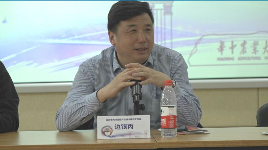 2023年4月10日,由湖北省食用菌协会主办的“湖北省大球盖菇产业技术座谈交流会”在我校第三综合楼七楼会议室举行。会议由中国菌物学会大球盖菇产业分会会长、我校应用真菌学科带头人边银丙教授主持,省蔬菜办副主任周雄祥、省食用菌协会会长肖扬、省食用菌产业体系首席专家王卓仁、易菇网总裁赵雄,第二届全国大球盖菇产业高级研修班学员和科研院所、龙头企业、专业合作社等单位代表共90余人参加了会议。