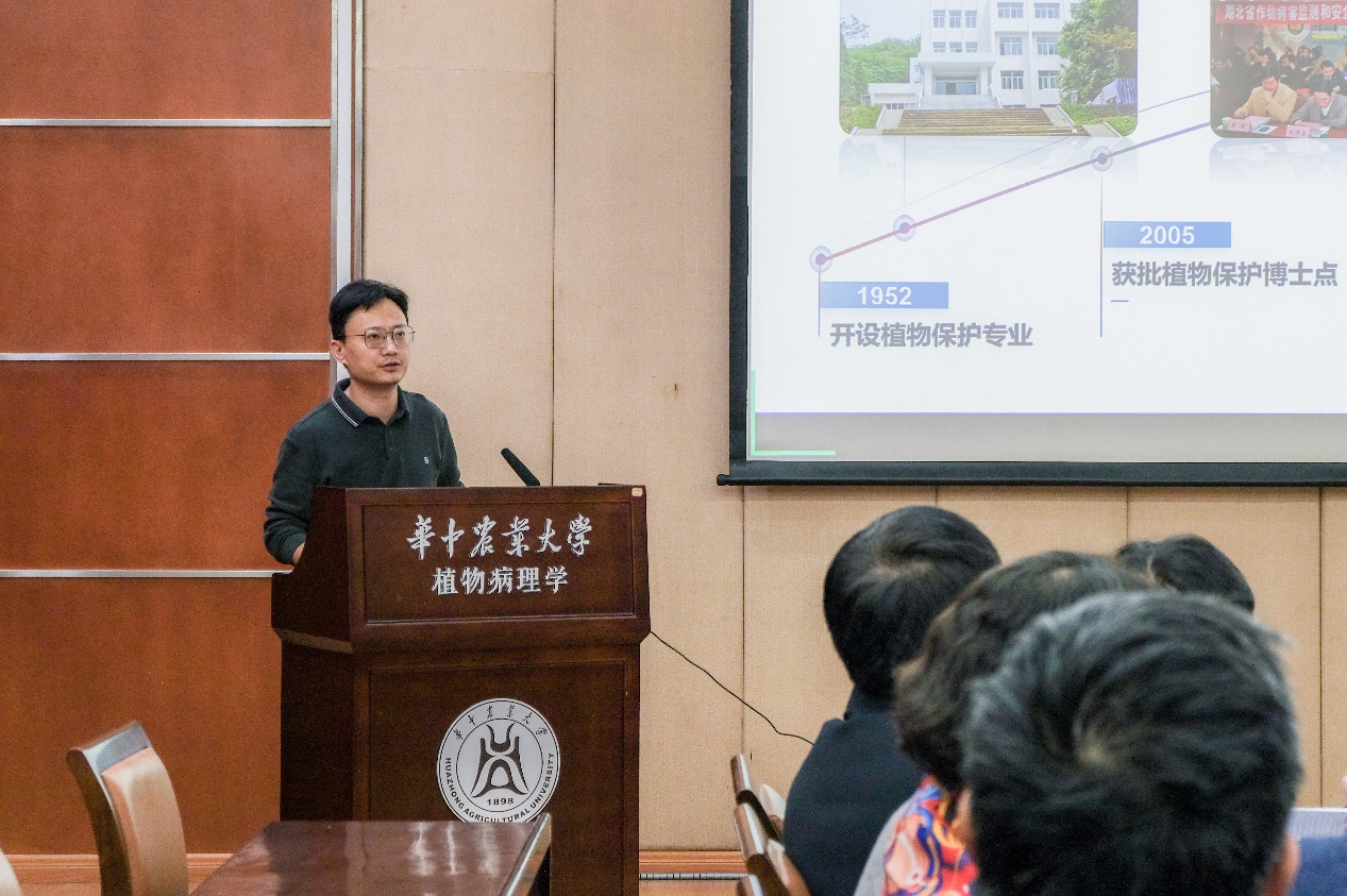 会议由2138cn太阳集团城姜道宏教授主持,朱龙付院长致欢迎辞。实验室主任谢卡斌教授作了实验室工作进展汇报,介绍了省重点实验室中围绕作物病害检测及成灾预测、植物与微生物互作机制、作物病害绿色防治、果树病理学和生物防治五个方向开展科学研究的实验室团队和研究成果。随后,我校津田贤一、谢甲涛和徐文兴教授分别代表所在科研团队作了进展汇报。其中,津田贤一介绍了团队围绕植物生长与胁迫权衡、植物免疫调控网络、植物与微生物组互作、植物病原菌致病机制和植物免疫进化五个方面取得的重要进展;谢甲涛以“真菌病毒资源挖掘、传播特性及其实践应用”为题阐述了微生物与植物免疫及绿色防控团队针对核盘菌的分子致病机制,并介绍了菌核病防治、真菌病毒资源挖掘和植物疫苗等多个方面的科研进展和取得的重要成果;徐文兴汇报了果树病理学研究团队在梨病毒高效脱除技术开发、真菌类病毒发现、梨轮纹菌致病机理、柑橘黄龙病检测等多个方面的研究成果。随后,周雪平研究员主持了青年PI报告会。于晓教授作了题为“类受体激酶介导的植物免疫保护机制”的报告;李国田教授则围绕基因编辑、基因驯化与作物光谱抗病进行了汇报;郭晓黎、郑露、吴明德分别汇报了其在水稻线虫病害、稻曲病菌致病分子机理和油菜黑胫病的发生检测及真菌病毒等方面的研究进展。最后,在彭友良教授的主持下,学术委员们对省重点实验室的工作进行充分评议,针对取得的成绩给予了充分肯定,并对存在的问题提出了宝贵的建议。