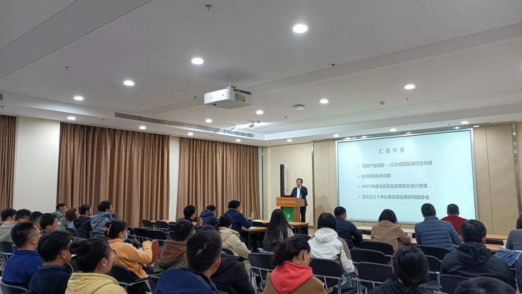 李永丰研究员从“寻找产业问题”“凝练科学问题”“国家自然科学基金申请书设计”“杂草研究体会”四个方面详细阐释了基金申报过程中需要注重的各项细节。