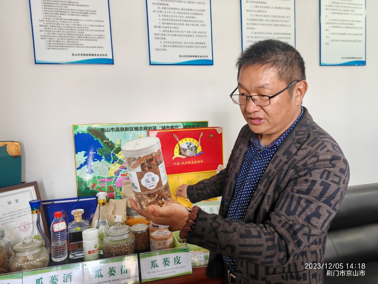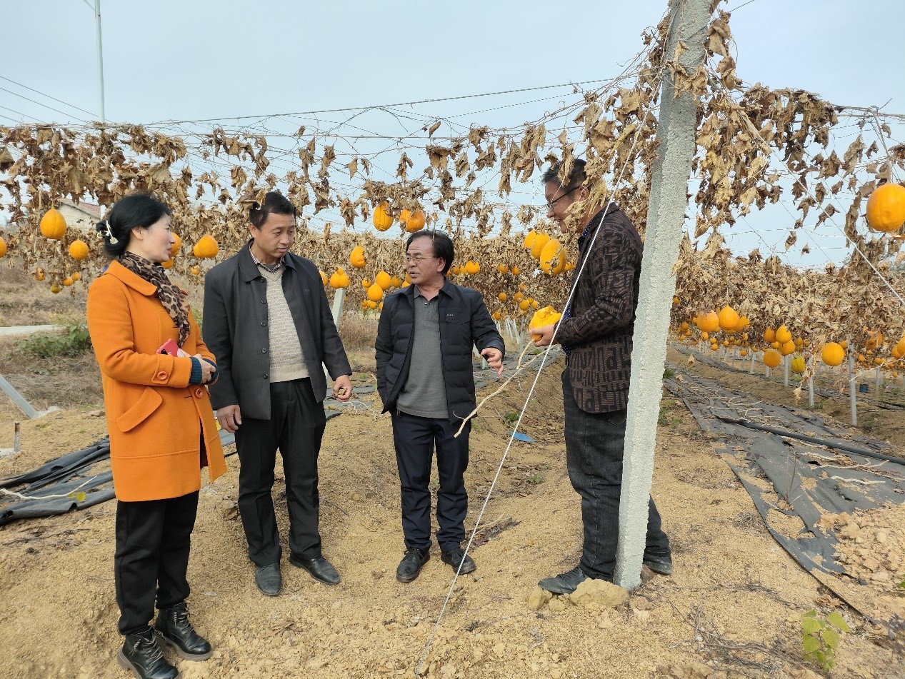 随后,在京山市科协、农业农村局领导的带领下,科技助力乡村振兴专家志愿服务团成员来到京山乐农药材种植合作社的栝楼种植基地,结合现场对栝楼高效种植、冬季管理等的主要技术环节进行了实地指导,并对药食同源瓜蒌的深加工和产品研发以及产业链完善等提出了建议。