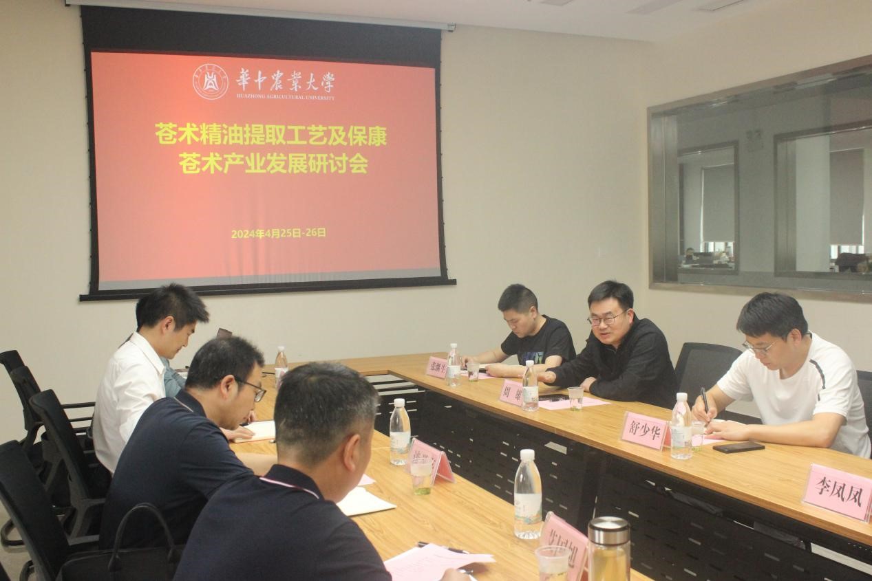 4月25日,苍术精油提取工艺及保康苍术产业发展研讨会在三综会议室召开。湖北省乡村振兴投资有限公司领导温亮,保康县农业局张继生,马桥镇政府镇人大主席艾国旭,欣禾丰公司主要负责人谈举亮、候仕勇、钟晓勇,学院党委书记周雄,药用植物团队副教授舒少华、丰胜求,学院大型仪器公共平台李凤凤老师及研究生代表参加会议。