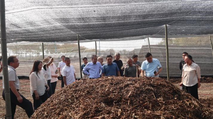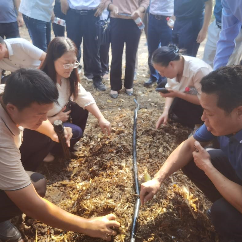 图2 与会专家和代表现场观摩大球盖菇栽培料建堆发酵过程