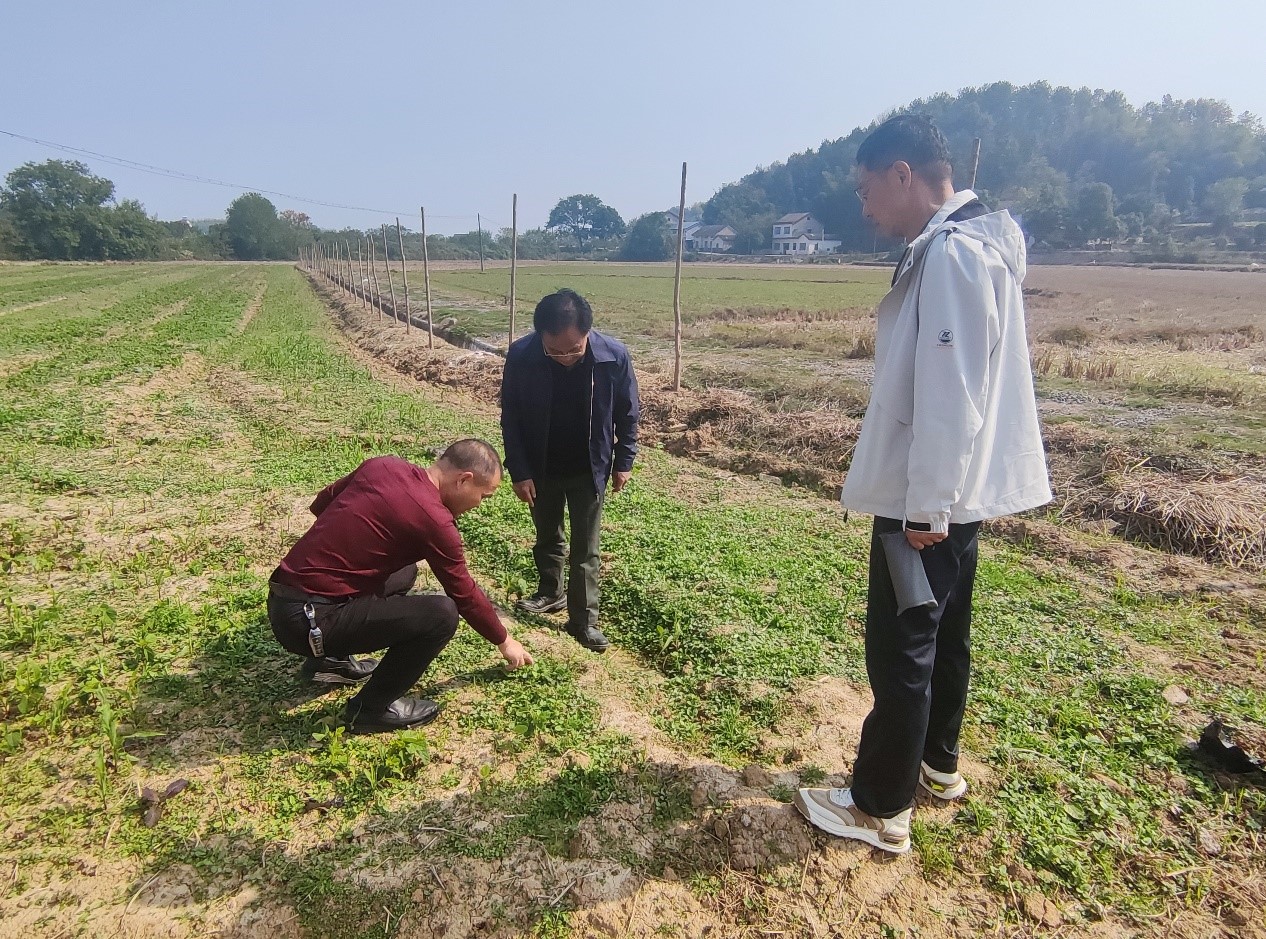 11月3日,王学奎带领学院陈国兴副教授、药用植物专业硕士研究生崔畅一行3人,来到荆州市盈业汇生态农业发展有限公司、松滋市丰裕中药材种植专业合作社,在公司法人周世军带领下,实地查看了公司及其合作社的“粮药轮作”基地和夏枯草种苗繁育基地,就公司目前关注的如何提高“玉米/大豆/水稻”与夏枯草轮作经济效益,以及夏枯草壮苗培育技术进行了技术指导,并对公司下一步产业的标准化、规模化发展提出了具体建议。针对今年持续干旱导致夏枯草育苗进程减慢、影响冬前及时移栽问题,专家指出,应利用当前气温较高的条件,及时灌溉、追施提苗肥,以尽快促进幼苗生长,缓解大田移栽延迟问题,力争夏枯草的稳产、增收。
