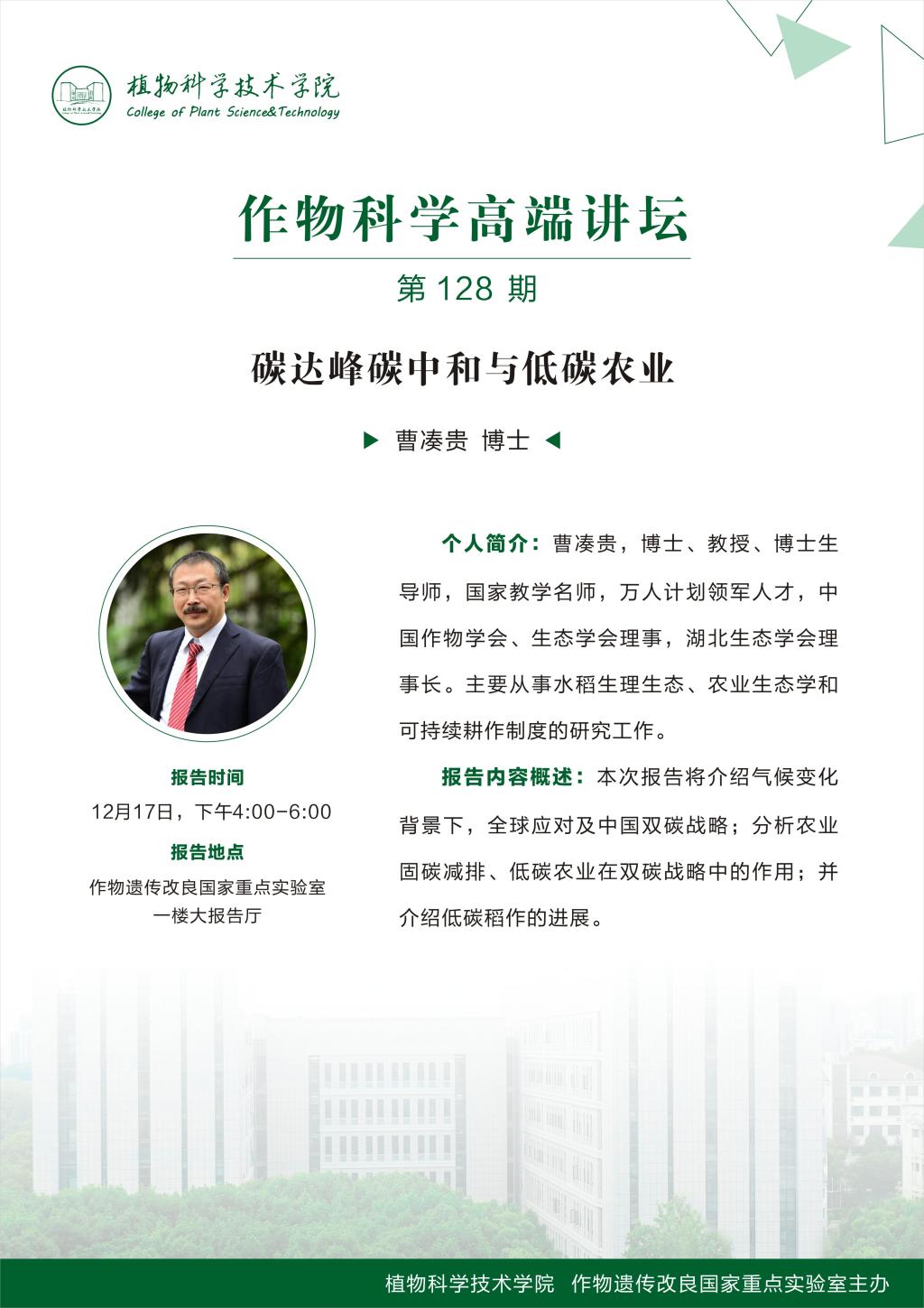 作物科学高端讲坛(曹凑贵 博士)