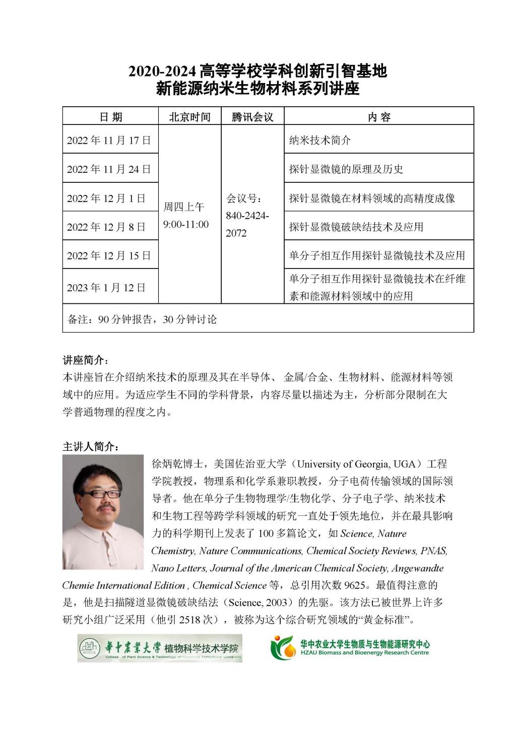 2020-2024高等学校学科创新引智基地新能源纳米生物材料系列讲座