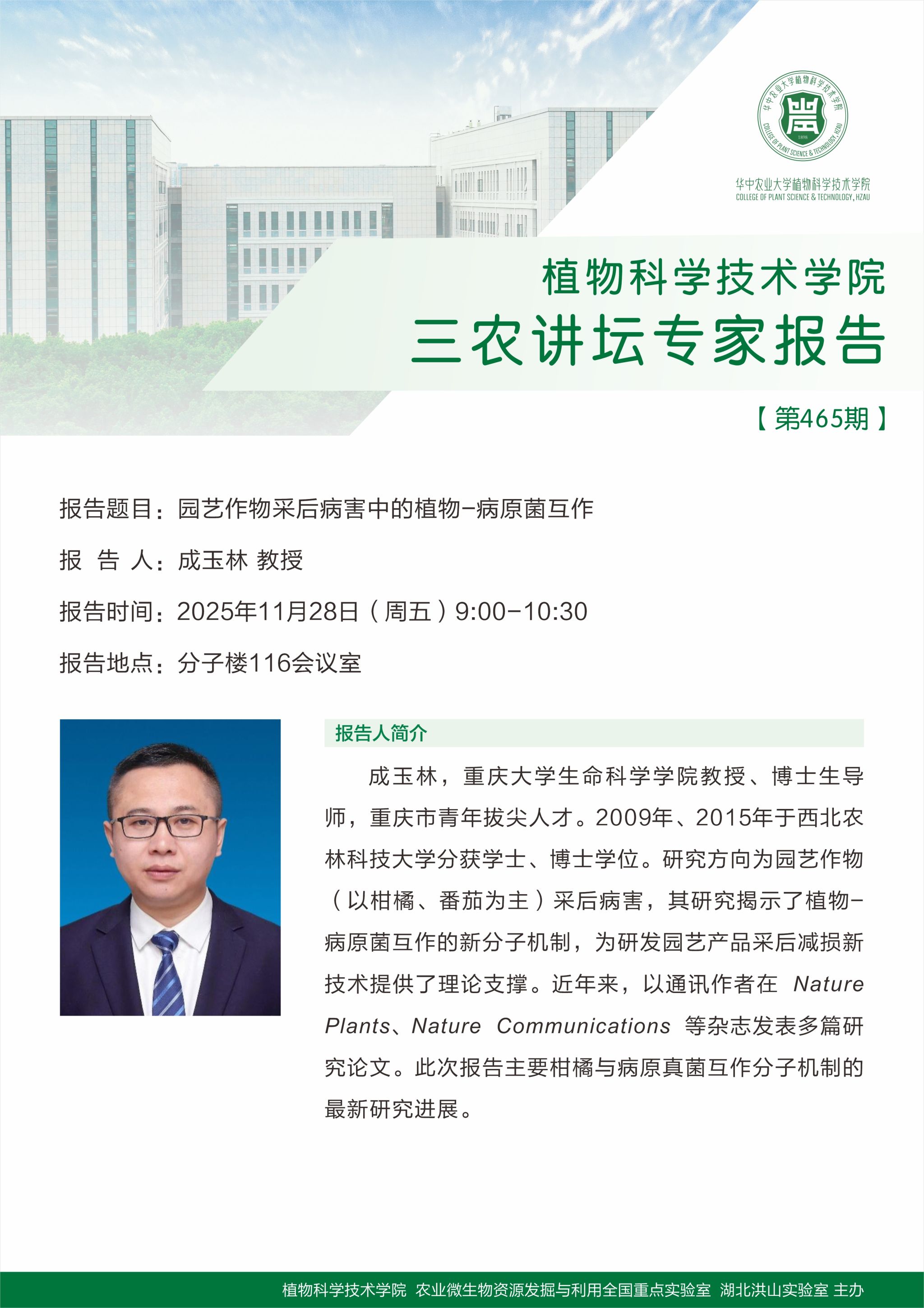 园艺作物采后病害中的植物一病原菌互作(成玉林 教授)