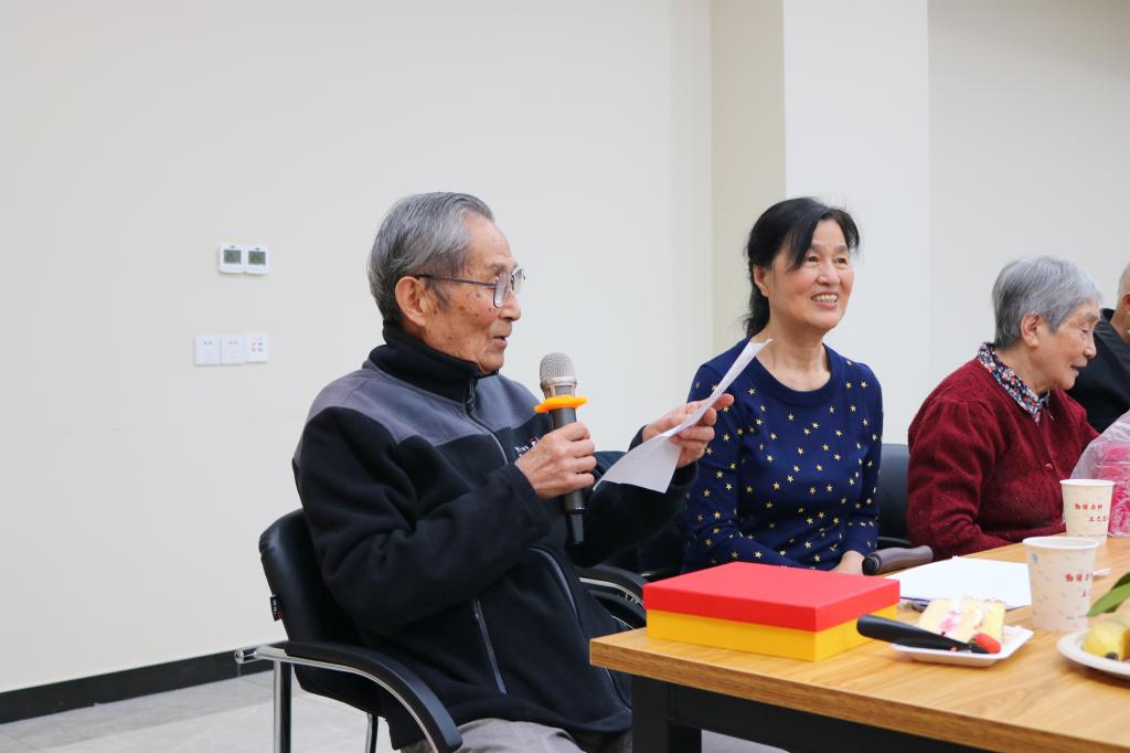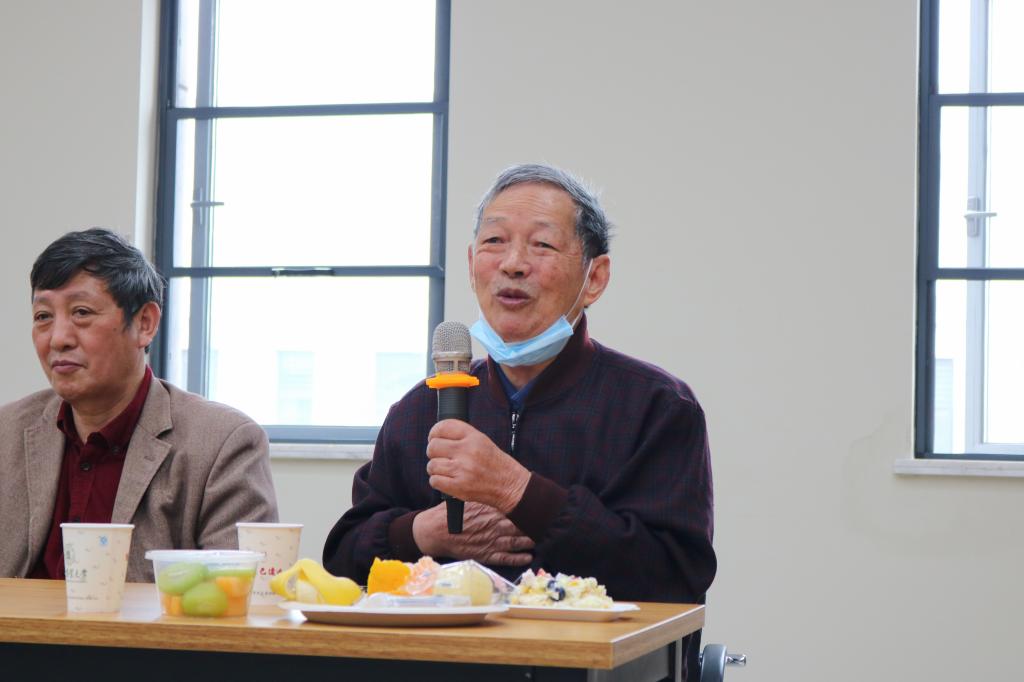 骆炳山老师情绪抑制不住的激动,他说道:今天这个会议我由衷的感到幸福,也为院的优良传统致以敬意。学院长期坚持对前人充分肯定和对后人的帮助成长,实在难能可贵。看着在场一位陌生又温暖的面孔,我感到温暖,这让我想起疫情困难的时候,学院对我们的有求必应,这是党的优良传统。”“我真心希望学院能够越来越好。”说到最后,忍不住唱起校歌,随着大家一起跟着唱了起来。农学离退休党支部书记李合生老师走到会场中间,激情的分享了他的感受。“生活在新中国,我们不会忘记党的关怀;生活在植科院,我们不会忘记每一位老师的照顾。学院对我们离退休老教师们有很多的关心,日常给我们提供参观、学习、交流的机会,生病时给我们充分的关心和支持,抗疫期间为我们购买生活用品,就连取快递也为我们设置了专站点。我们也祝愿学院在未来的发展中更上一层楼。