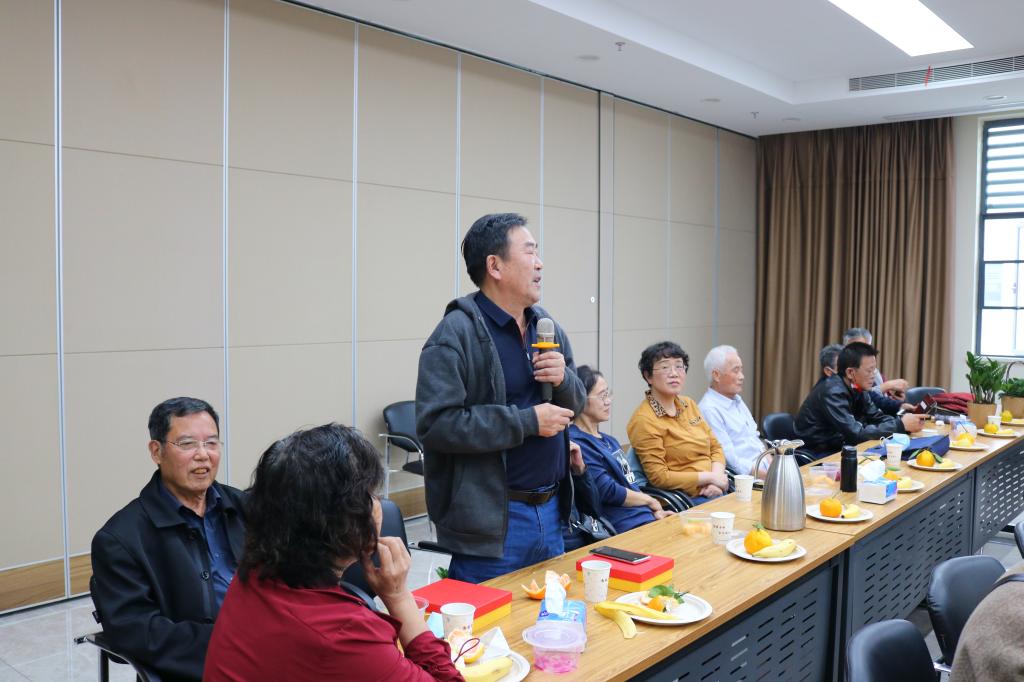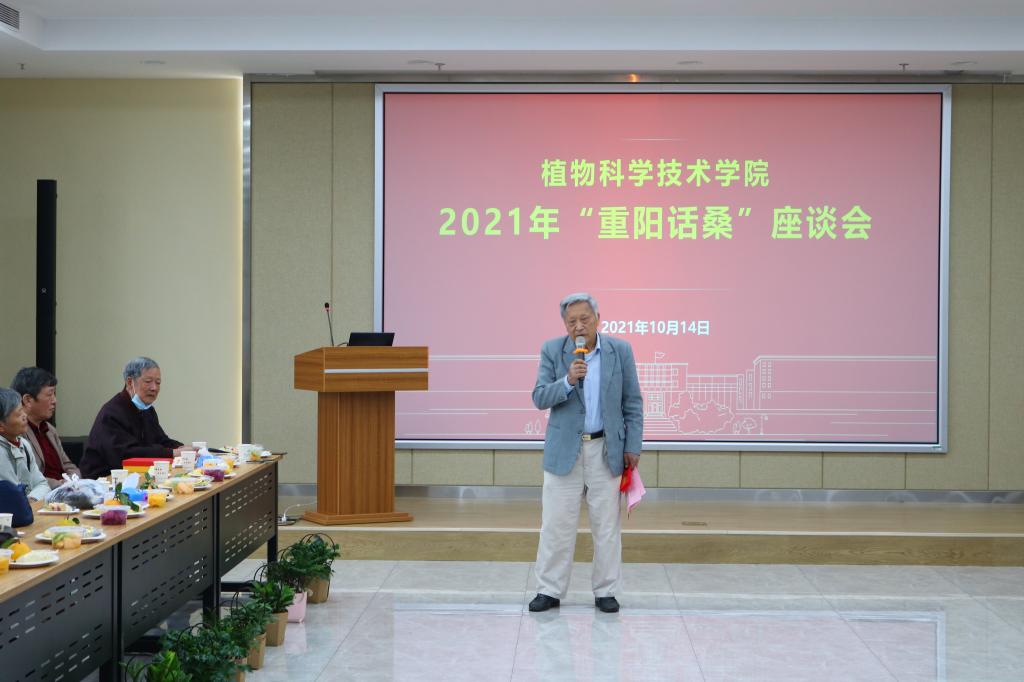 “今天是重阳节,作为一名植科院的退休教师,我感觉很幸福。”在场教师纷纷发言表达自己的情感。宗良炳老师结合自己的经历以及在当前国际疫情形势,表达对在校园环境里生活的幸福感;孙东发老师围绕学院事业发展表达了新的期待;苏峥老师更是为现场所有老师们激情朗诵《沁园春·雪》。