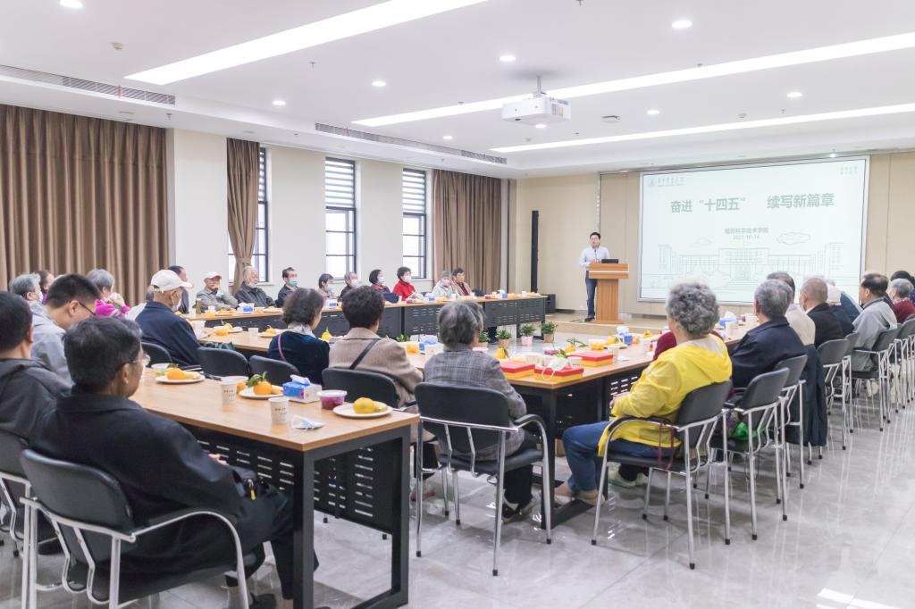 “你们是学院事业的建设者,更是学院发展的亲历者,我们是从你们手中接过接力棒,沿着你们开辟的路继续前进,你们永远是我们的坚强后盾和温暖港湾。”周雄动情致敬参会教师,并以“奋进‘十四五’,续写新篇章”为主题面向全体教师做学院事业发展的工作报告。他围绕学科与人才队伍建设、人才培养、科学研究、国际太阳集团、党的建设与学院治理等方面回顾“十三五”事业发展状况,谋划“十四五”事业发展新举措。“祝愿各位前辈们身体健康,家庭幸福。也欢迎前辈们常回学院看看徒子徒孙们学习和工作的状态,多提宝贵意见。”周雄最后为所有老师们送上美好祝福。