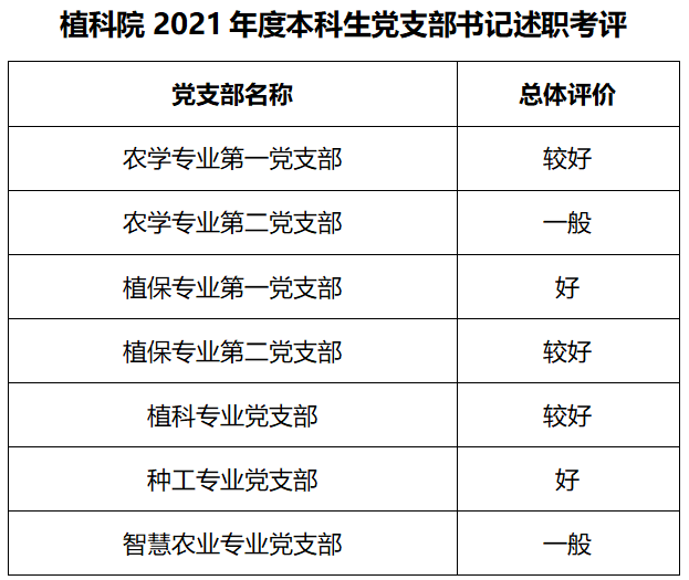 根据《关于做好2021年度党支部书记抓党建述职评议考核工作的通知》要求,学院大学生党总支于2022年3月15日开展了本科生党支部书记现场述职评议考核工作,现将考核结果公示如下。