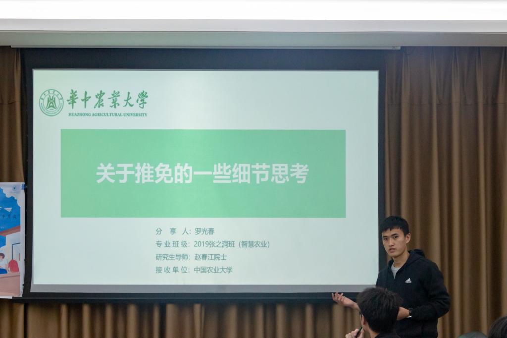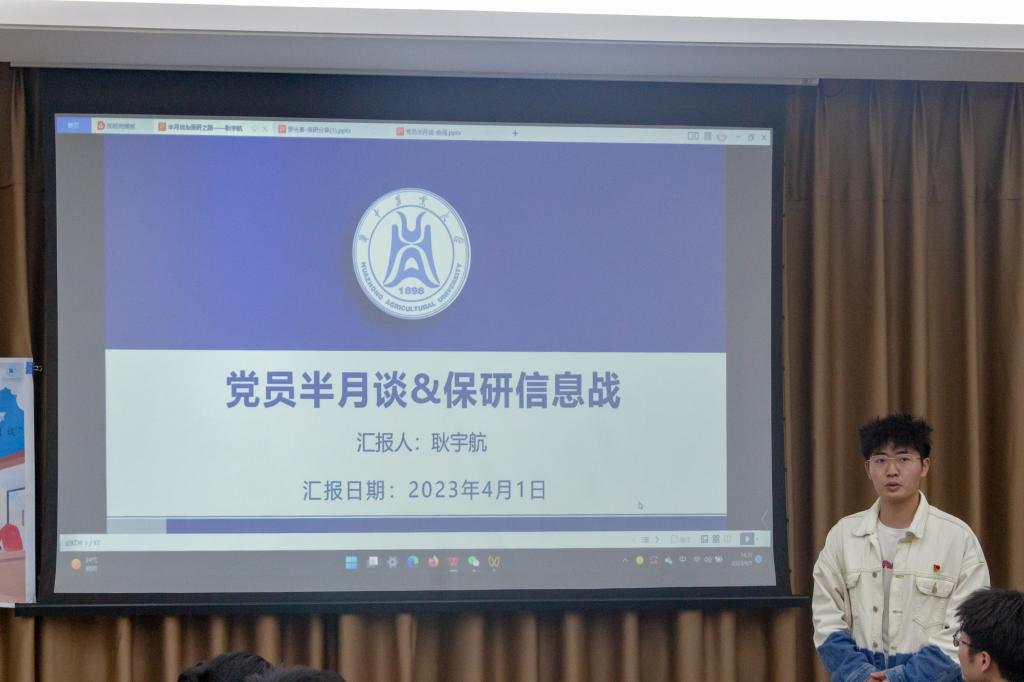 4月1日下午,由我院党办活动部组织的第三十一期党员半月谈活动于三综B308举行。智慧农业党支部罗光春、植保第一党支部耿宇航、植科专业党支部余闯受邀分享他们的保研经历。