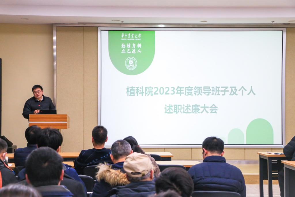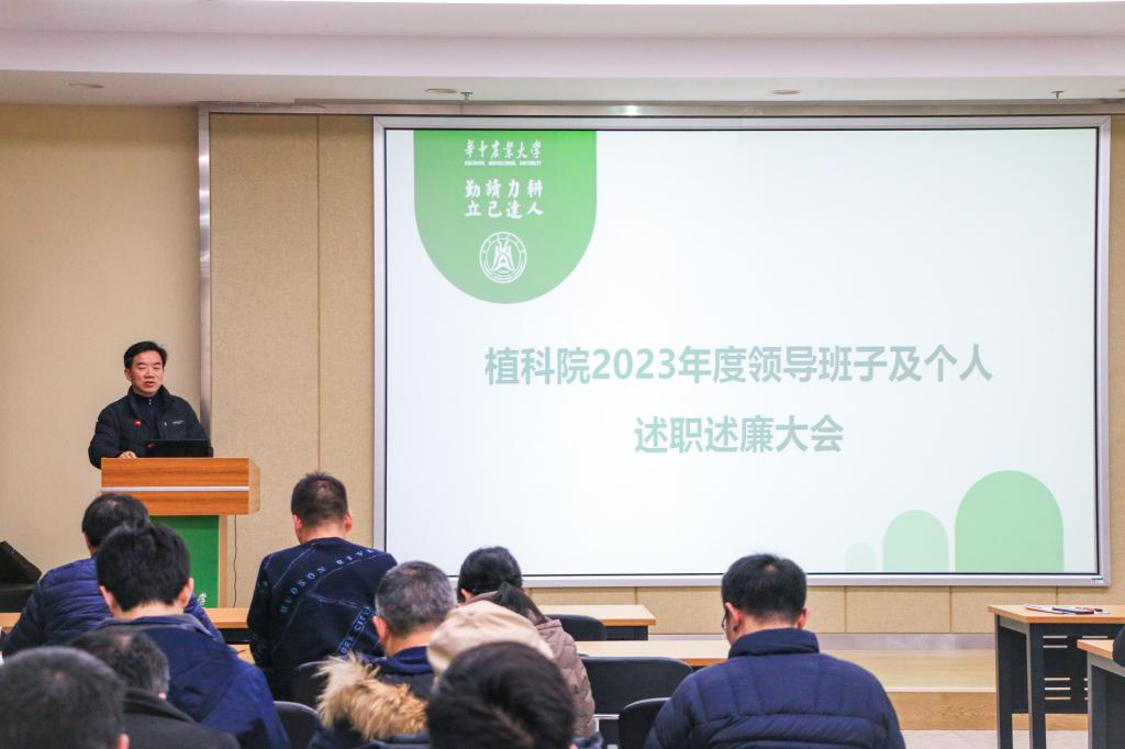 周雄从四个方面进行了述职:一是以党建为引领,加强理论学习,把稳政治方向;二是以团队为抓手,育英才建高水平队伍,增强本领;三是以问题为导向,落实工作抓重点,提出举措讲思路;四是以全体植科人的共同努力为力量,共创良好环境实现学院事业的可持续发展。