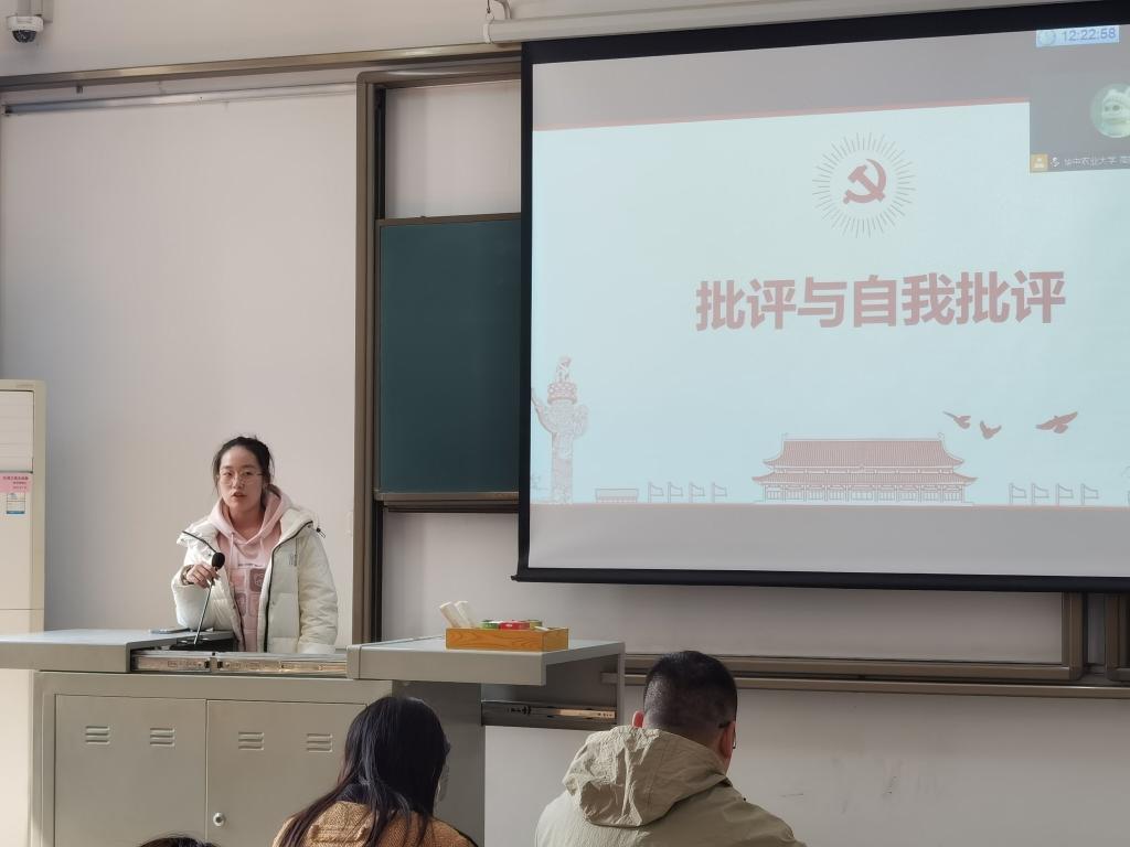 组织会前,党支部进行了集中理论学习,通过交流查摆问题,收集党员群众意见。理论学习期间,支部党员王永康解读了习近平总书记在二十届中央纪委三次全会上的重要讲话精神。他谈到作为学生党员,我们要在日常生活中带头做到廉洁自律。支部党员王晶晶“湖北冻雨”为例,分享了学习中央农村工作会议和习近平总书记对“三农”工作重要指示精神的感悟。她阐述了2024年“三农工作”主要内容和千万工程的内涵。随后,党支部副书记高婧雯面向与会党员开展党员不得信教的专题教育,她提到,“共产党员不能信教是党的先进性和纯洁性的要求,信仰、信念、忠诚共产党人的根本、元气和主心骨。
