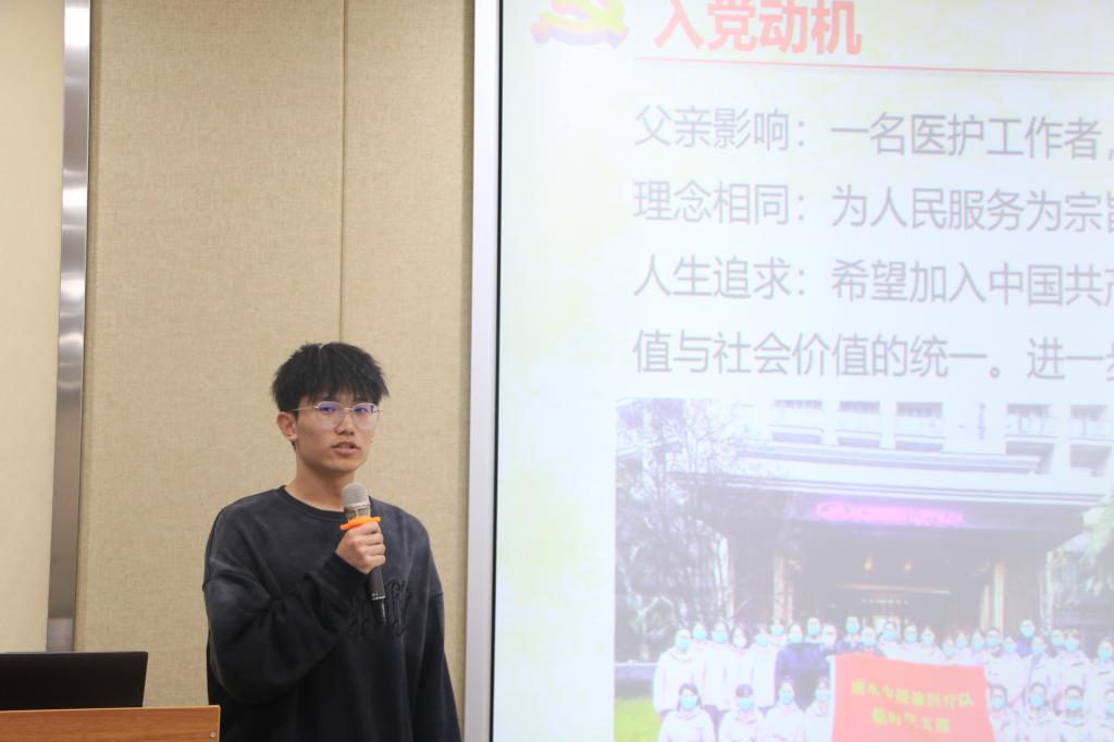 候选人杨新元谈到:”我的父亲是一位医务工作者,在他的影响之下,我对中国共产党充满向往,希望能够加入党组织,进一步规范自身,不断进步,利用自己专业所学为社会进步贡献力量,实现个人价值与社会价值的统一。“候选人杨吉招提到,在华农求学的五年里,她积极参加学生工作与志愿服务,致力于服务师生。在这个过程中不断深化对党的认识,渴望成为中国共产党员的一员。