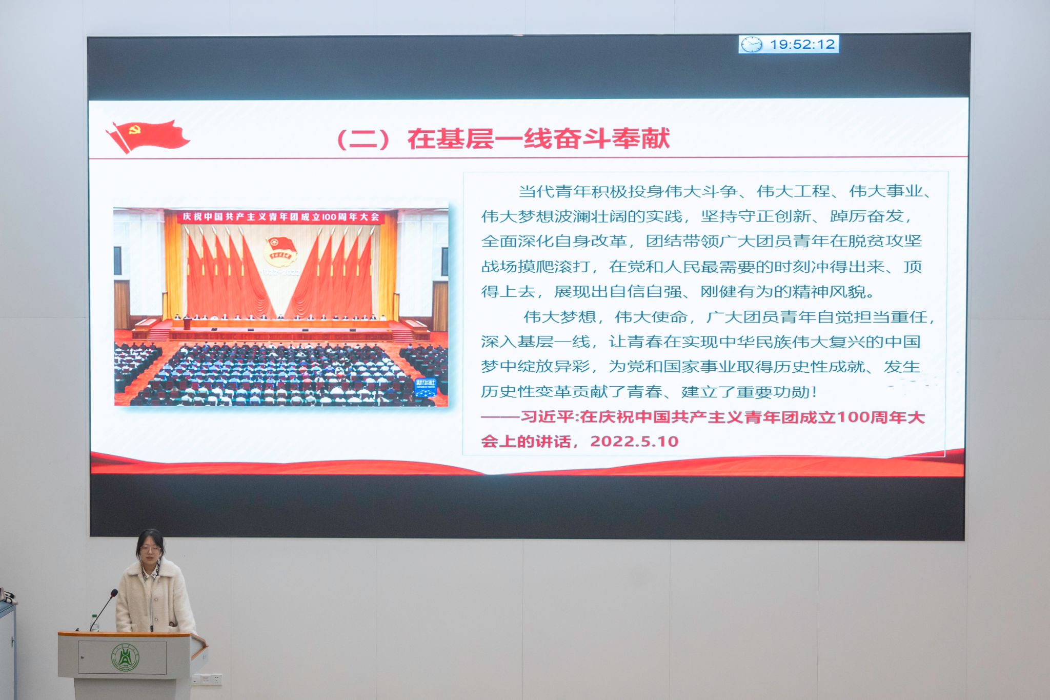 王艺菲首先围绕党的二十大精神和二十届三中全会精神两个方面展开讲解,从使命任务、新发展格局、新发展理念等多角度阐述我国所取得的成就。同时立足农科院校,王艺菲鼓励同学们“要厚植爱农情怀,练就兴农本领”。她谈到,“作为新时代青年,大家应当积极响应党中央号召,以中国式现代化全面推进中华民族伟大复兴。”