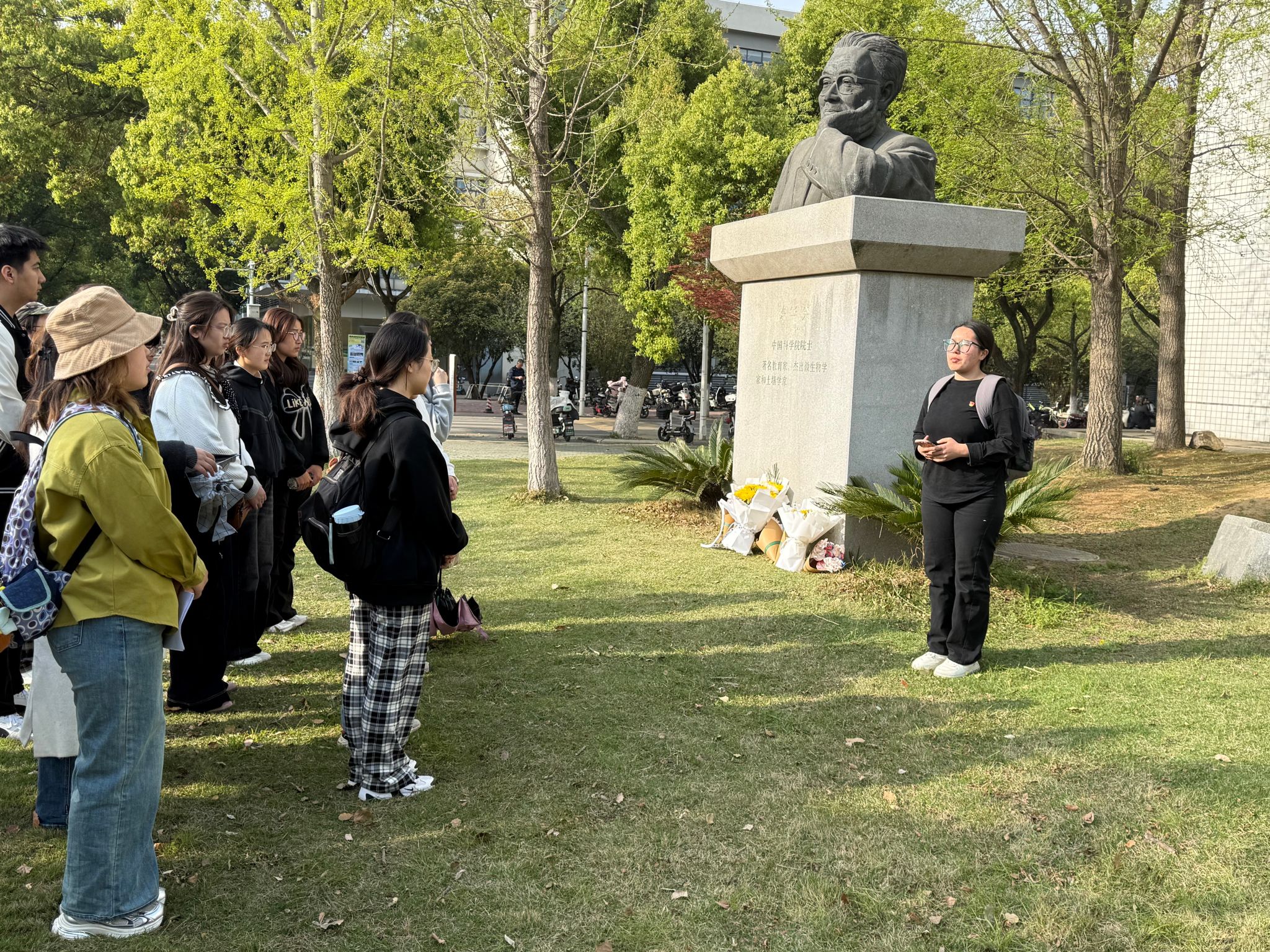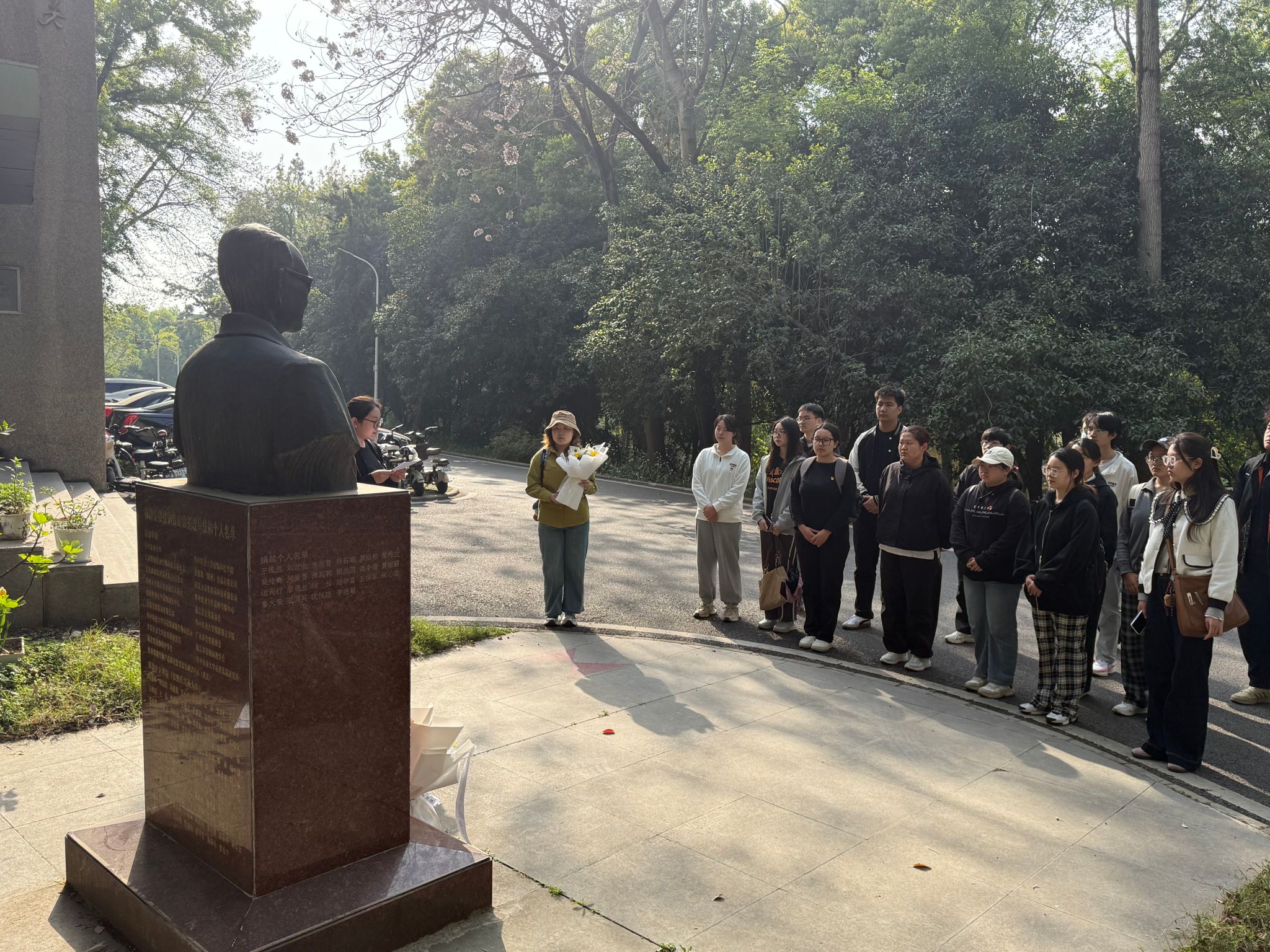 活动伊始,师生党员代表先后瞻仰我校作物与植保方面学科先辈。本科生党员代表祖力批亚·玉苏普在陈华癸先生铜像前,讲述其开创中国微生物学研究的奋斗历程,先生用毕生心血铺就科研报国之路;研究生党员黄甜甜于刘后利先生纪念雕塑旁,重现“油菜之父”躬耕田畴六十载的科研坚守,努力在平凡的岗位上踏实做好每一件事,书写不平凡的人生;少数民族学生代表斯琴塔娜,在杨新美先生雕塑前说道:“先生将菌种写在大地上,将个人的规划与国家的需求紧紧联系在一起,他不仅是一位杰出的科学家、伟大的教育家,更是一位优秀的中国共产党党员!”。