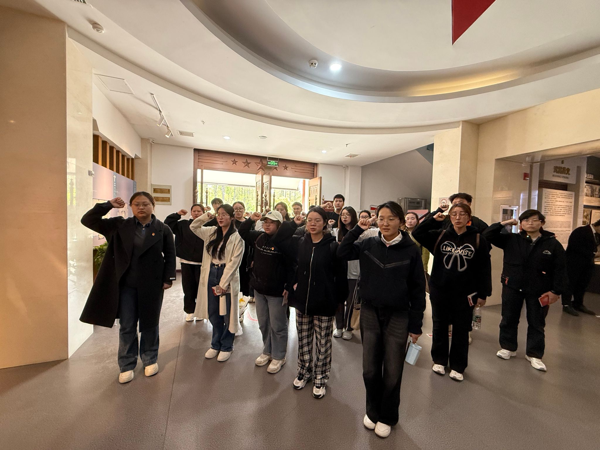 "先烈回眸应笑慰,擎旗自有后来人。"在江夏革命烈士纪念馆前,党员代表敬献鲜花,智慧农业第一党支部党员孙诗睿带领全体党员,在烈士铜像前,重温入党誓词。铿锵誓言回荡在广场,传递着新时代青年赓续红色血脉的坚定信念。在讲解员的带领下,师生们先后参观武昌首义、新文化运动与五四运动、建党、北伐、腥风血雨、全面抗战、迎接解放七个主题展厅,栩栩如生的画面重现了江夏儿女前赴后继的革命画卷,师生党员仿佛置身于那个烽火连天的年代,不时驻足沉思,追缅怀念,交流心得。马恬远勉励现场党员"先辈用生命铸就的精神丰碑,需要我们以行动去守护传承。"