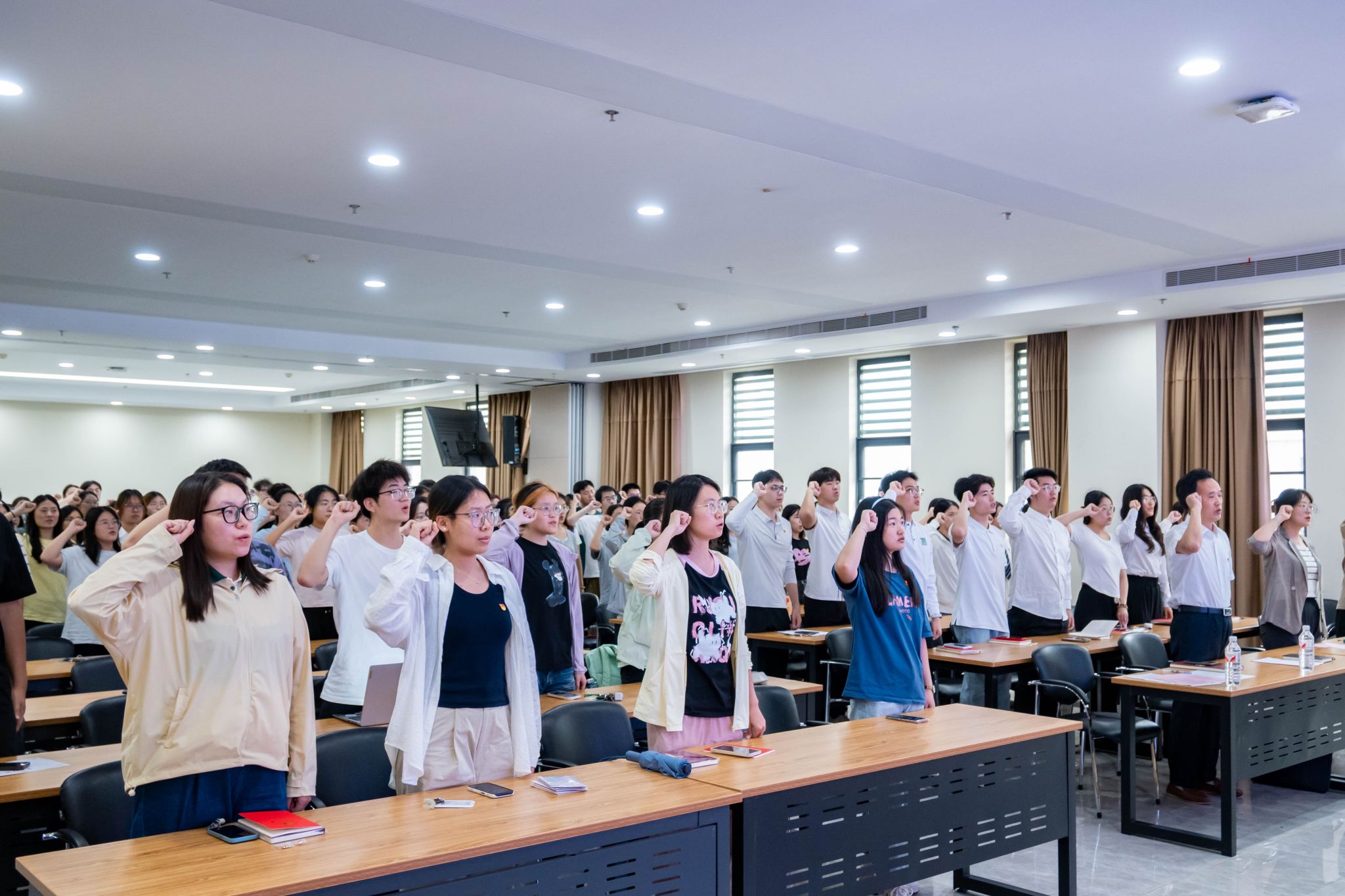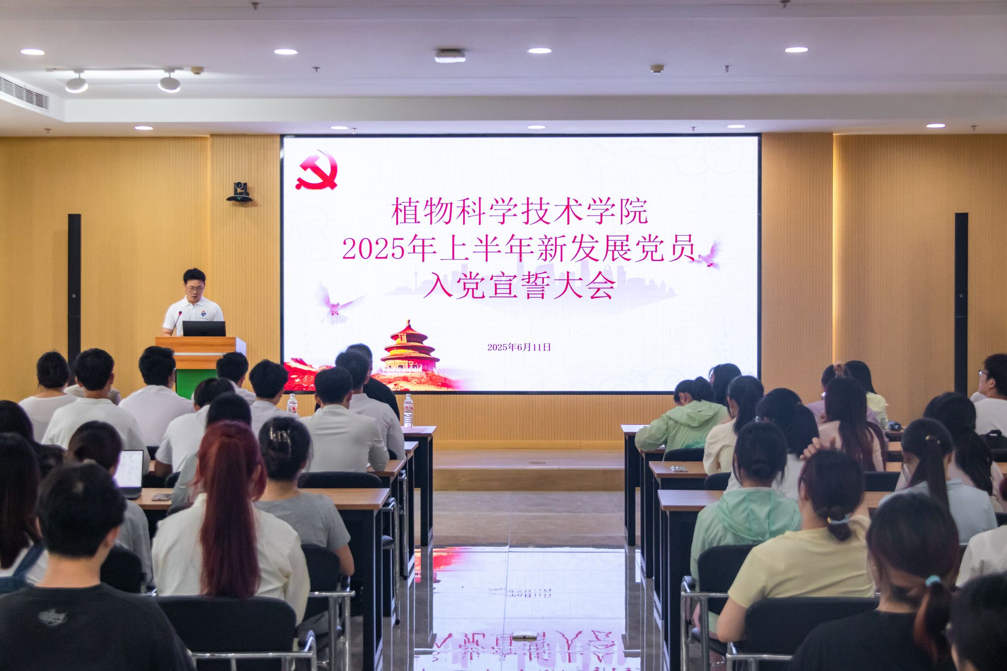 6月11日下午,植科院2025年上半年新发展党员宣誓大会在三综A705会议室举行。学院党建工作组织员袁友亮,研究生党建辅导员任伟,本科生党建辅导员马恬远,70名新发展党员以及全体党员参加会议。大会由智慧农业支部党员郑志龙主持。