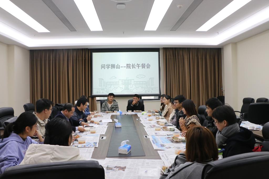 12月2日中午,在综合楼B308召开“问学狮山—院长午餐会”师生交流活动,学院院长朱龙付、各年级学生代表参加。活动由党委副书记孙超主持。