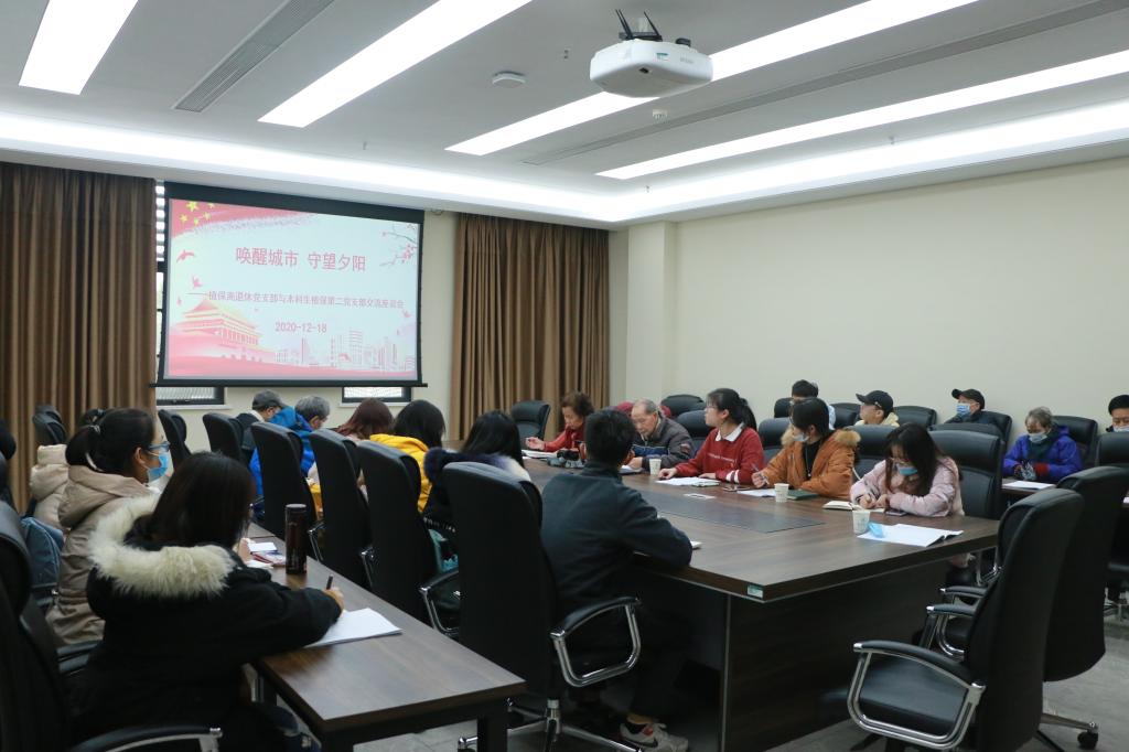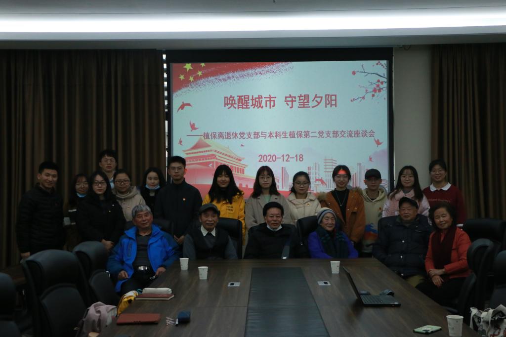 12月18日,植保植保离退休党支部与本科生植保第二党支部共同学习十九届五中全会的精神,共同商讨两个支部拟合作举办的“唤醒城市,守望夕阳”志愿活动的开展形式。原植保系辅导员、植保系书记、老年大学常务副校长陈德光,植保离退休党支部书记荣秀兰及支部成员,植保第二党支部全体成员参加本次活动。汪芷璇主持本次活动。