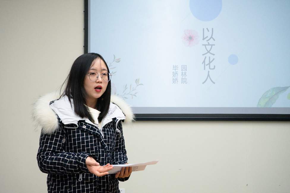 来自园艺林学学院的特邀嘉宾毕娇娇以“以文化人”的角度,从二、三、四、五四个数字来讲述校园文化的重点。二是两季三节,即毕业季和迎新季;三指三品,包括学术品貌、育人品性、文化品位;四是四个转变——数量型向品质型、展示型向参与型、娱乐型向涵育型、“品牌”型向常态型转变;五是指五色校园,包含红、金、绿、蓝、橙五色。