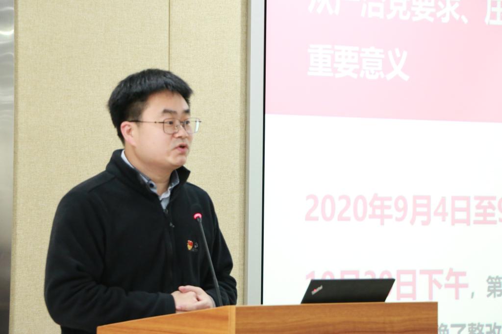 周雄代表学院领导班子从巡察整改工作组部署情况、巡察整改工作落实情况、巩固深化巡察整改工作成效等三个方面对巡察整改工作进行了汇报。他谈到,学院党委通过深化思想认识,提高政治站位;加强组织领导,压实工作责任;完善制度体系,构建长效机制;围绕中心工作,回应师生关切。截至目前,学院巡察整改任务已经基本完成。随后他针对巡察发现的20个方面问题汇报了学院党委落实整改情况。通过巡察整改,学院党的全面领导得到进一步加强,学院领导班子担当意识得到强化、干事创业的积极性得到提高,学院党组织的组织力、执行力和战斗力进一步提升,全院师生进一步增强“四个意识”、坚定“四个自信”、做到“两个维护”。他表示,学院党委将继续贯彻落实全面从严治党的总体要求和部署,进一步巩固和深化巡察整改成果,将此次巡察整改同学习贯彻习近平新时代中国特色社会主义思想结合起来,同学院治理结构优化与综合治理能力提升结合起来,同推进一流学科和一流专业建设结合起来,同促进学院师生的全面发展结合起来,持续扎实推进整改长期建设任务落实,做到平时如巡时、功夫在平时,促进学院各项工作再创新业绩,为早日建成世界一流农学院奠定更加坚实的思想基础和组织保障。