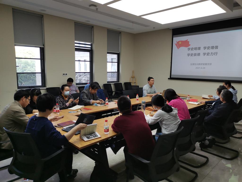 2021年4月29日,生理生化教研室教工党支部召开“学史明理 学史增信 学史崇德 学史力行” 主题党日活动,支部党员和教研室教师集体开展学习。会议由支委李勇主持。