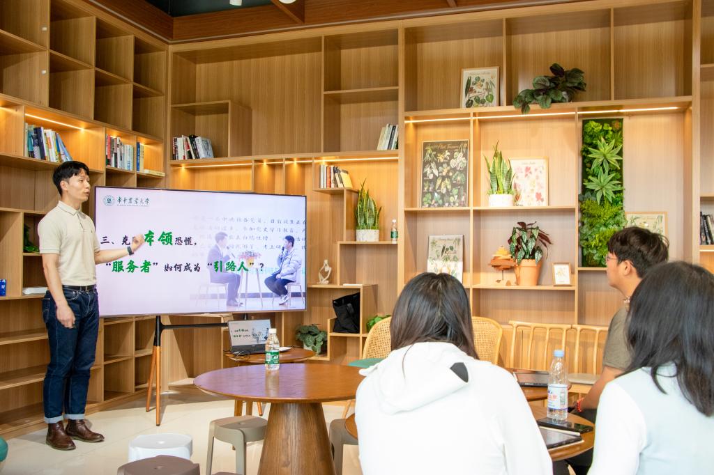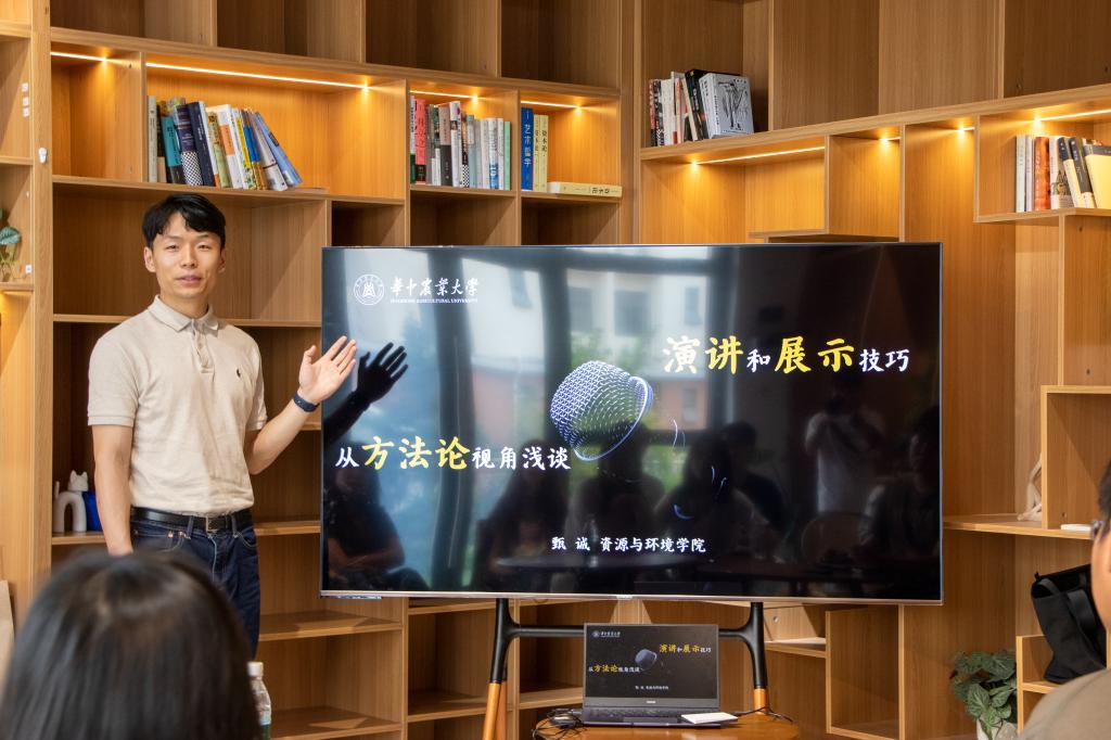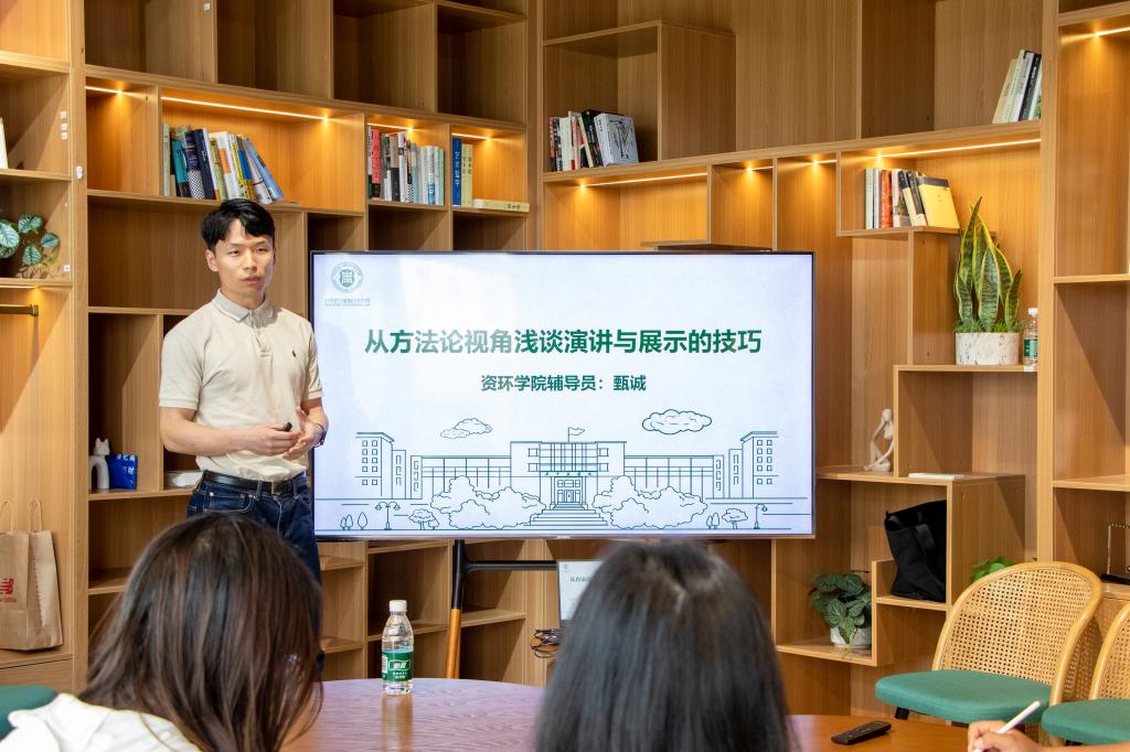 4月27日,植科俊秀训练营第39期培训在“一站式”学生社区交流空间104展开。本次活动邀请资源与环境学院辅导员甄诚老师与20余名同学交流分享。