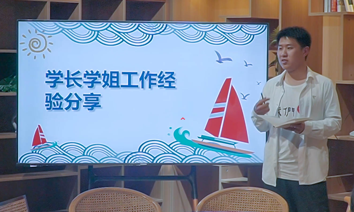 随后,曲靖澜为同学们带来他的学生工作经历分享。他首先抛出问题:“学生工作的意义是什么?”同学们的回答各不相同,有的认为可以结识更多优秀的人,有的则认为有利于以后找工作。他表示,学生工作的意义有很多,每个人都可能会有不同的想法,而最重要的是以“做一名有思想的行动者”为指南积极工作,在学生工作中提升自身能力,寻找更多的意义。谈到自己的工作经历时,曲靖澜对自己在疫情期间值守的经历感触颇深:“虽然辛苦,但作为一名学生工作者,能够为疫情防控贡献自己的绵薄之力,还是会觉得这是一段非常有价值、有意义的经历。”