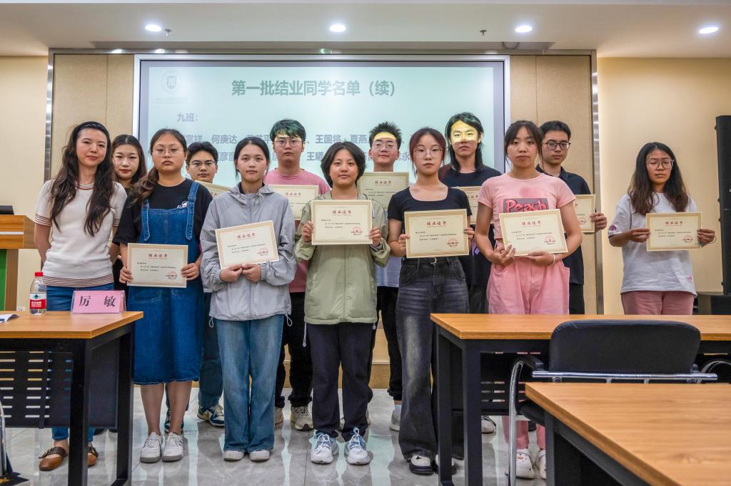 大会最后,厉敏、李纵擎分别为各班颁发结业证书和优秀班级证书并合影留念。