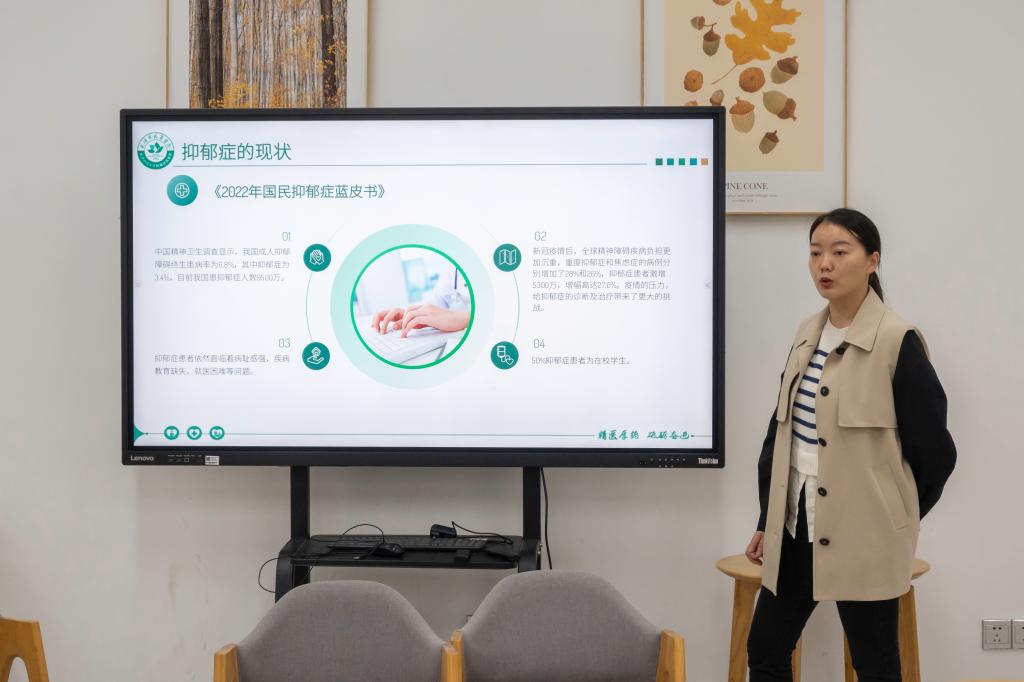 为了让同学们更好地判断自己当前的压力状况,罗晓玉医生展示了评估压力的测量方法,并分析了大学生常见的压力来源。她指出:“学业、人际关系、就业前景等因素都可能成为压力的来源,学会合理应对这些压力对于维护心理健康而言至关重要。“
