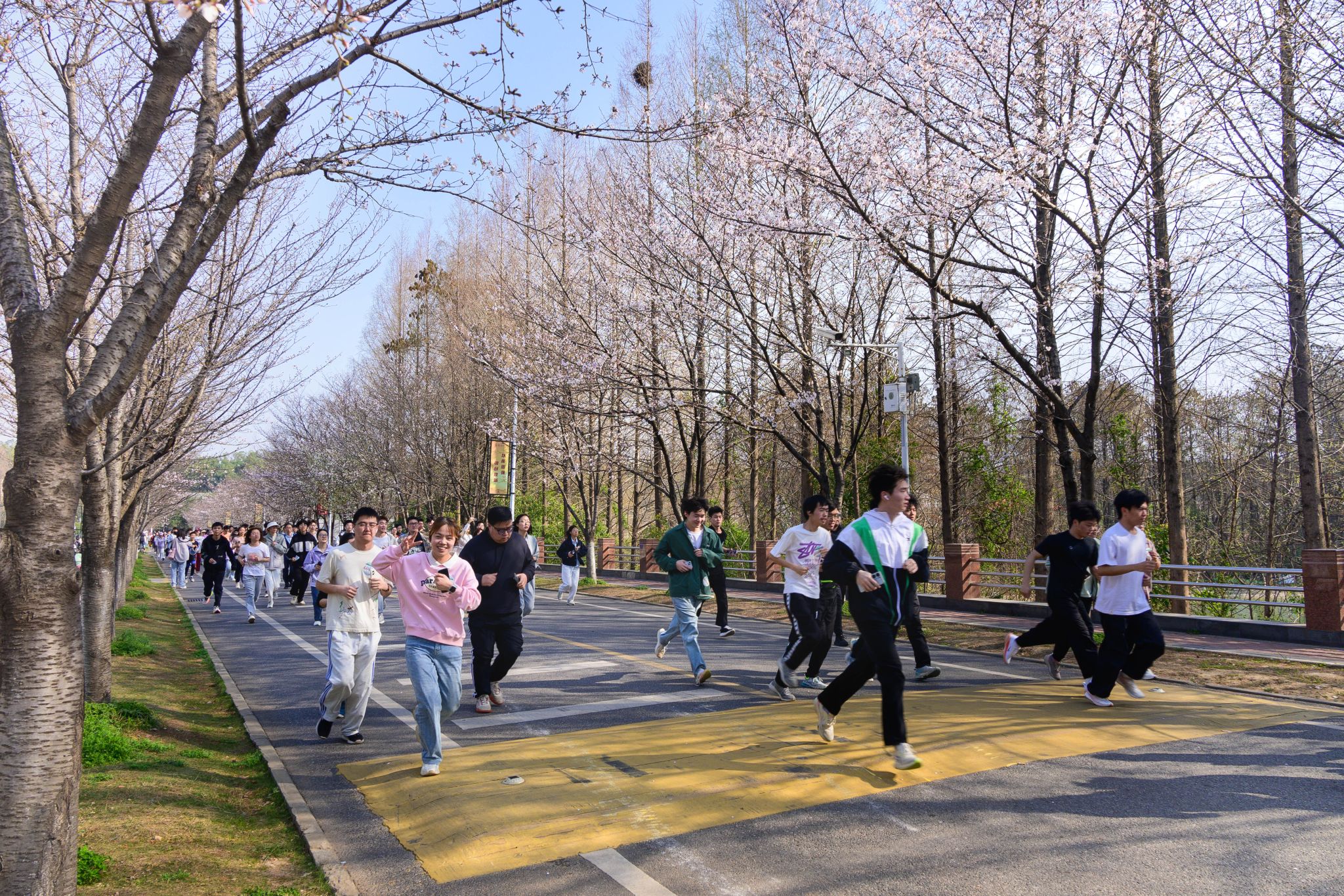 在赛前热身环节,师生们跟随校健美操队的节奏舒展身体,为长跑做好充分准备。随着发令枪响,我院参赛师生精神抖擞,奋勇向前。本次长跑活动分为竞赛组和非竞赛组,竞赛组设有四分马拉松赛、师生个人赛和寝室赛,最长赛程约10.5公里,沿途经过橘园路、樱花路、狮子山大道、南湖、油菜花田、二十四节气园、图书馆等校园标志性景点。我院师生在奔跑中感受春日的生机与校园的美景,展现了健康向上的生活态度。