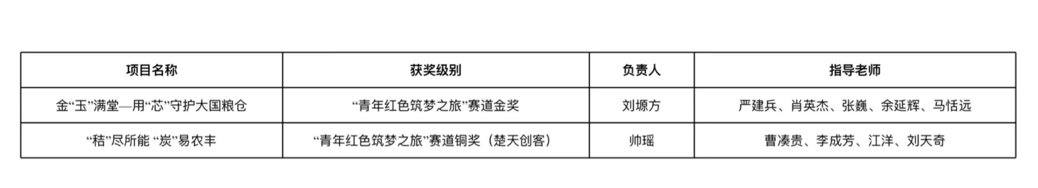 本届比赛分为主赛道项目、“青年红色筑梦之旅”赛道项目、职教赛道项目等项目类别。经过公开答辩、项目展示以及路演,我院刘塬方团队“金玉满堂——用芯守护大国粮仓”项目获青年红色筑梦之旅赛道金奖,并在金奖排位赛中取得创意组第一的成绩。帅瑶团队“秸”尽所能,“炭”易农丰项目获得湖北省“我梦见-楚天创客”大赛青年红色筑梦之旅赛道铜奖。