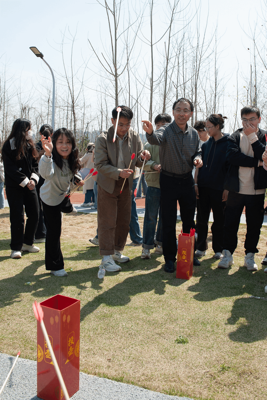 各支队伍从第三综合楼出发,意气风发地徒步前进。试验田的油菜花交织成绚丽的“春日锦缎”。沿着油菜花田继续前行,到达乐乐园后,趣味运动吸引了众人的参与。苏超老师与同学们一起挑战踢毽子,现场气氛十分热烈。苏老师表示,这是他第一次参加“狮山长走”活动,能和学生们一起暂时放下实验室的工作,享受这春暖花开的美好时光,体验非常棒。他还期待在秋季也能举办类似的活动,一起欣赏校园不同时节的风景。
