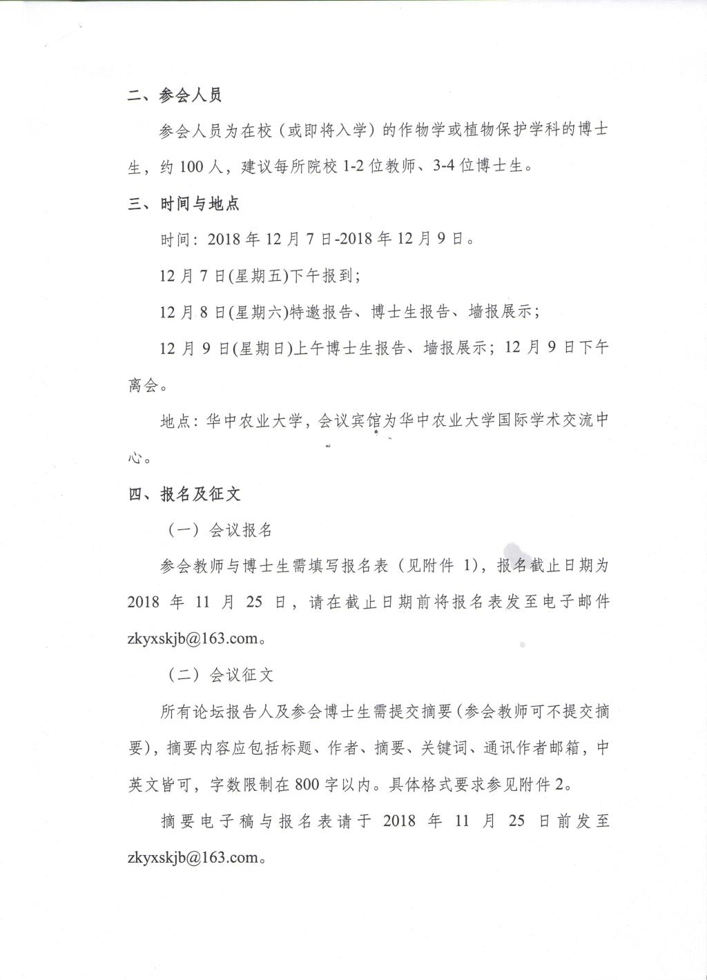 关于举办第一届武汉·南湖作物学和植物保护博士论坛的通知