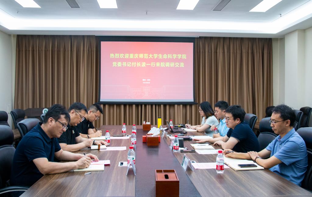 6月6日,重庆师范大学生命科学学院党委书记付长波、执行院长张涛等一行来我院调研智慧农业专业建设。学院党委书记周雄、副院长罗朝喜,智慧农业系主任李林等在第三综合楼B308会议室接待了来宾。