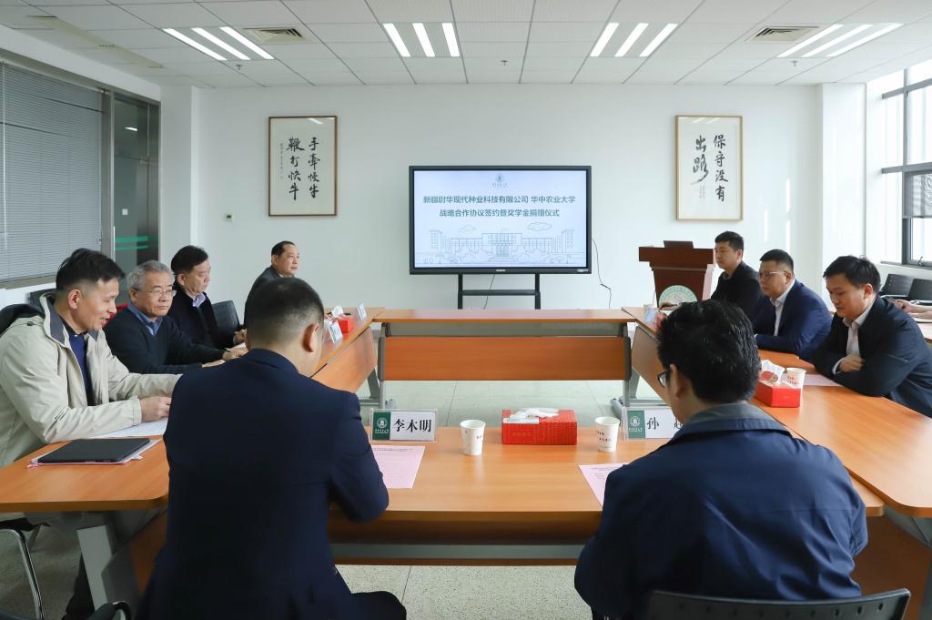 3月14日上午,新疆尉华现代种业科技有限公司-2138cc太阳集团战略合作协议签约暨奖学金捐赠仪式在作物遗传改良全国重点实验室C408举行。
