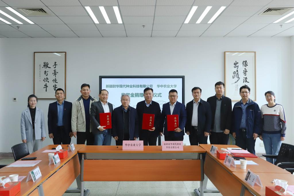 随后,新疆尉华现代种业科技有限公司与学校进行战略合作协议签约及奖学金捐赠仪式。