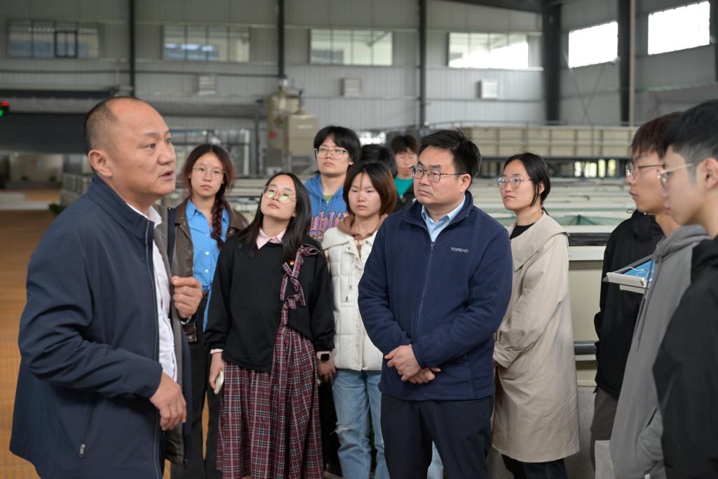 在仙桃市中小企业产业园,张沟镇先锋村党支部书记朱传宝热情地为同学们分享了先锋村乡村治理和黄鳝产业发展过程,“先锋村在产业发展过程中与科研院所、高校合作形成了完善的产业链,在黄鳝人工苗种繁育、规模化生产、加工产品研发、数字化云交易平台建设等方面逐步突破。乡村振兴离不开青年人才的后备力量,村子富裕起来,年轻人们愿意返乡创业,产业发展才能越做越好。欢迎更多的青年学子来村实践,参与乡村振兴事业,为乡村发展贡献智慧。”