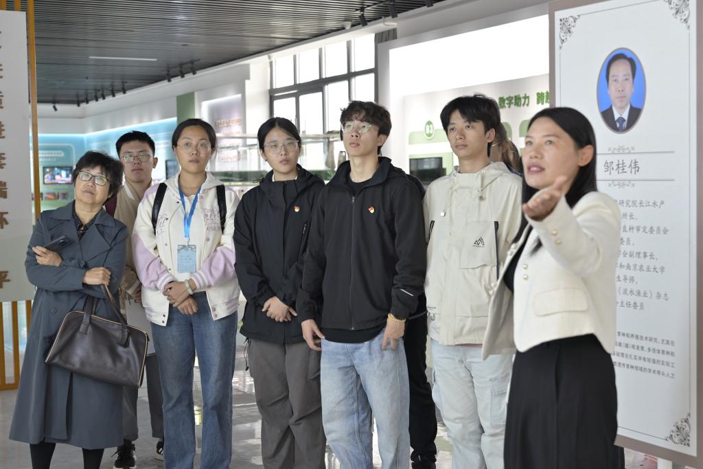 随后,师生前往先锋黄鳝贸易市场、仙桃黄鳝馆、仙桃黄鳝供应链公司等地进行参观,了解网箱养鳝技术、黄鳝养殖全过程智能管控技术和黄鳝产销模式与体系,感受先锋村在黄鳝产业发展中的创新和引领作用。期间,王庆超与养殖户交流技术问题,并向同学们介绍了黄鳝养殖相关知识。柏芸老师在“渔民驿站”中感叹,先锋村治理有序,村内环境如诗如画,各处展馆设计合理、内容丰富,真正展现了新时代美丽乡村发展理念。